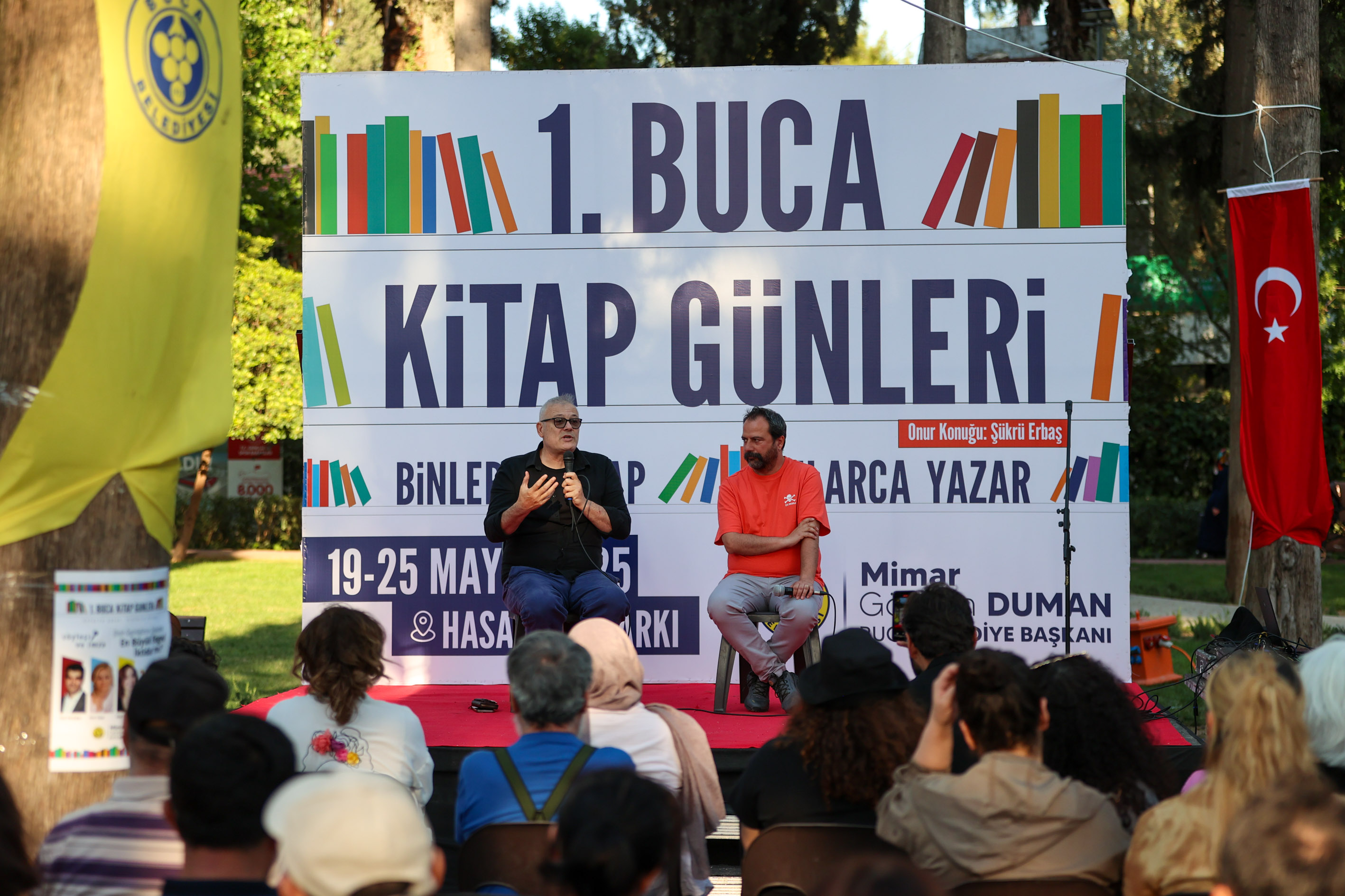 Buca Belediyesi’nin Hasanağa Bahçesi’nde gerçekleştirdiği 1. Buca Kitap Günleri kapsamında düzenlenen söyleşilerin ilk konukları tiyatro sanatçısı Levent Üzümcü, oyuncu Orçun Masatçı ve yazar Gaye Boralıoğlu oldu. Bucalıların ilgiyle dinlediği sanatçı Levent Üzümcü, yaşanan ekonomik dar boğazın ve hükümetin belediyeler üzerindeki mali politikalarının sanat çalışmalarını önemli ölçüde etkilediğine değindi. Levent Üzümcü, şunları söyledi: