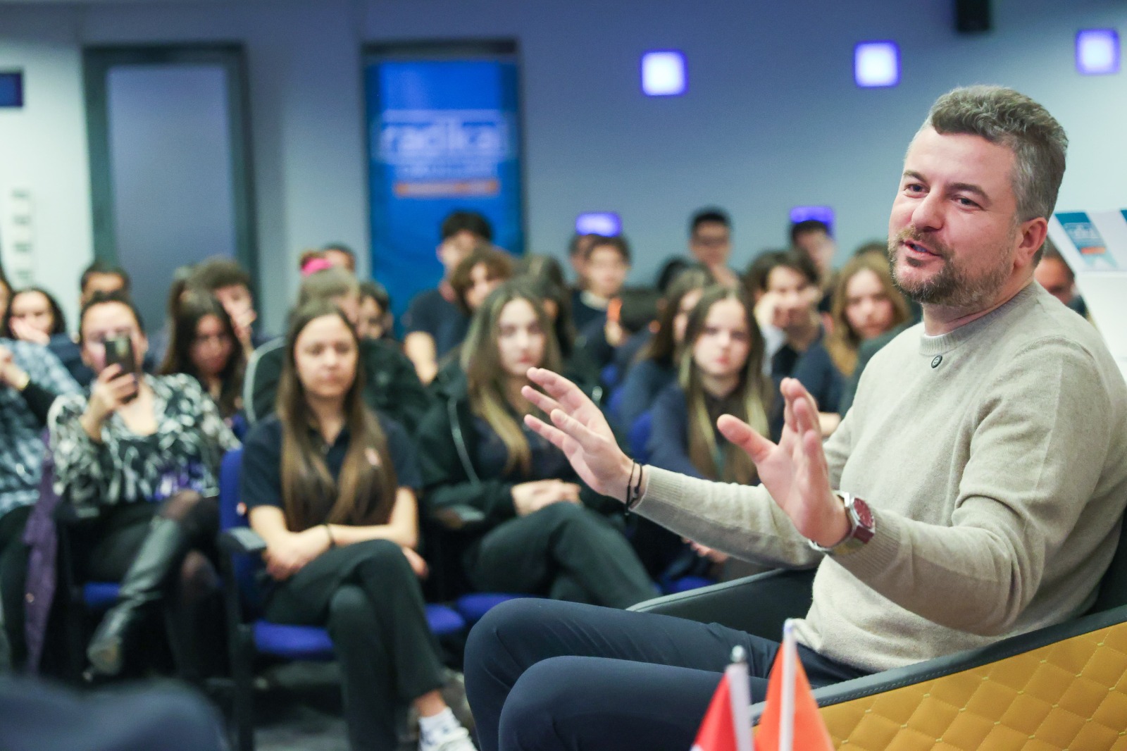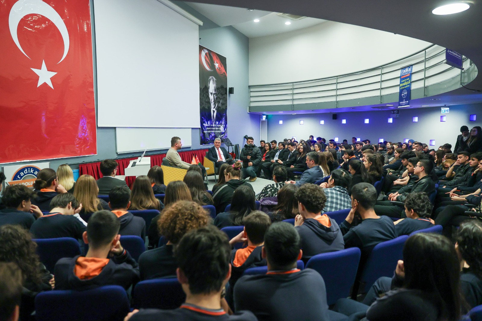 Buca Belediye Başkanı Görkem Duman, Buca Radikal Okulları Anadolu Lisesi‘nin düzenlediği Kariyer Günleri’nin konuğu oldu. Buca Radikal Anadolu Lisesi Müdürü Mehmet Yılmaz’ın moderatörlüğünü yaptığı buluşmada, gençlerden gelen soruları yanıtlayan Belediye Başkanı Görkem Duman, şunları söyledi: “Kendinizi mutlu hissetmeyeceğiniz bir mesleği tercih etmeyin. Ne yazık ki ülkemizde anne babanın yönlendirmesi ile meslek seçimi oluyor. Bunu doğru bulmuyorum. Özümsediğiniz benimsediğiniz alanda tercihinizi yapın. İstediğiniz mesleği seçtiğinizde hedef koymanız da daha kolay. Meslek tercihini kendiniz yapın. Hayatınızın bundan sonra mutlu ya da mutsuz olması bu eşiğe bağlı, bu eşik mutlu ve başarılı olmanızın tercihi olacaktır.”