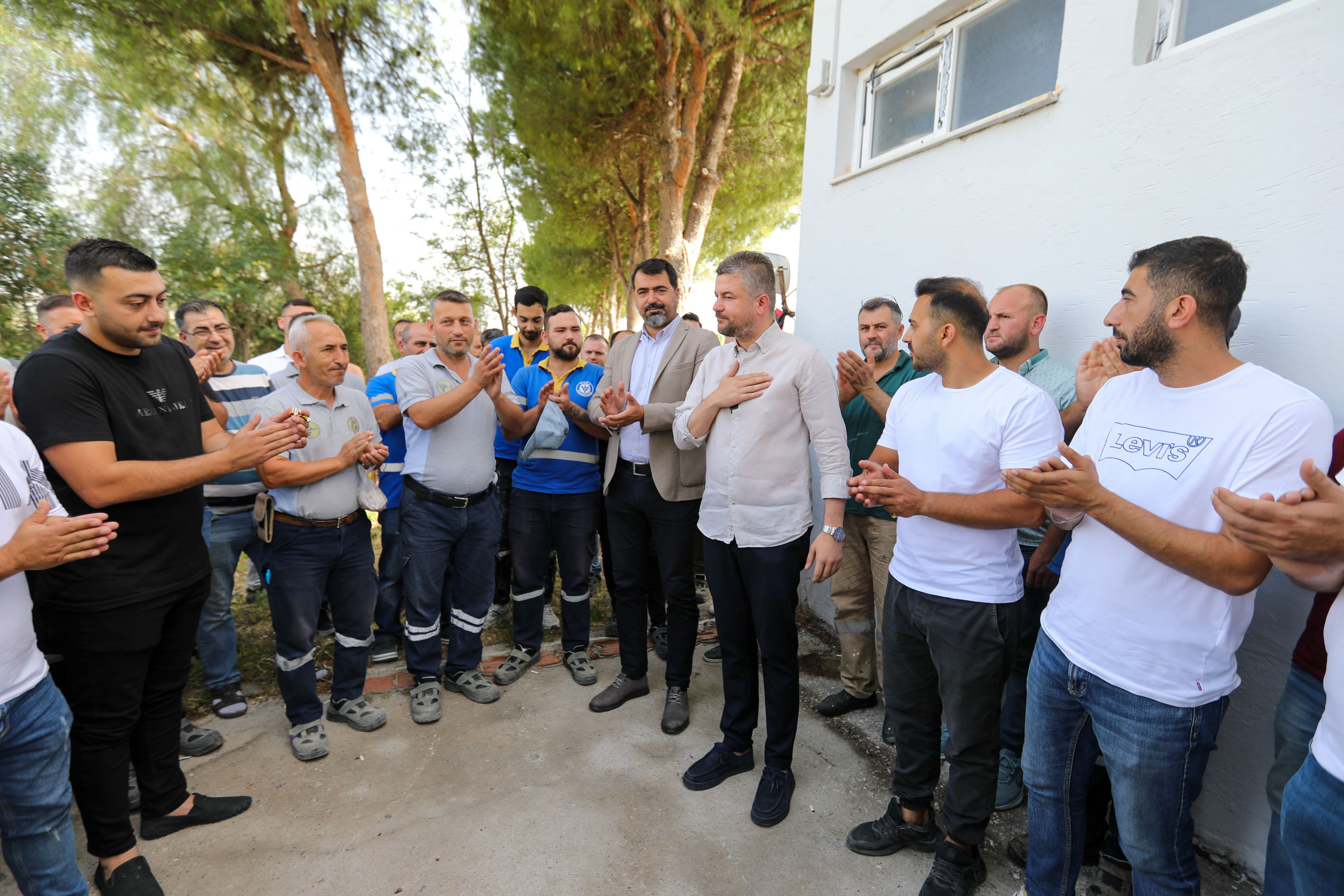Buca Belediye Başkanı Görkem Duman, bayramlaşma mesaisine şantiye ziyaretleriyle başladı. Daha sonra belediyenin tüm birimlerini tek tek gezen Başkan Duman, çalışma arkadaşlarıyla sohbet etti. Personele özverili çalışmaları için teşekkürlerini ileten Başkan Görkem Duman, “Çok kısa bir süre içerisinde çok ciddi bir çalışma yaptınız, güzel bir etki bıraktınız. Bu ekip ruhuyla Buca’yı daha iyi yerlere taşıyacağız. Hepinize teşekkür ederim” diye konuştu.