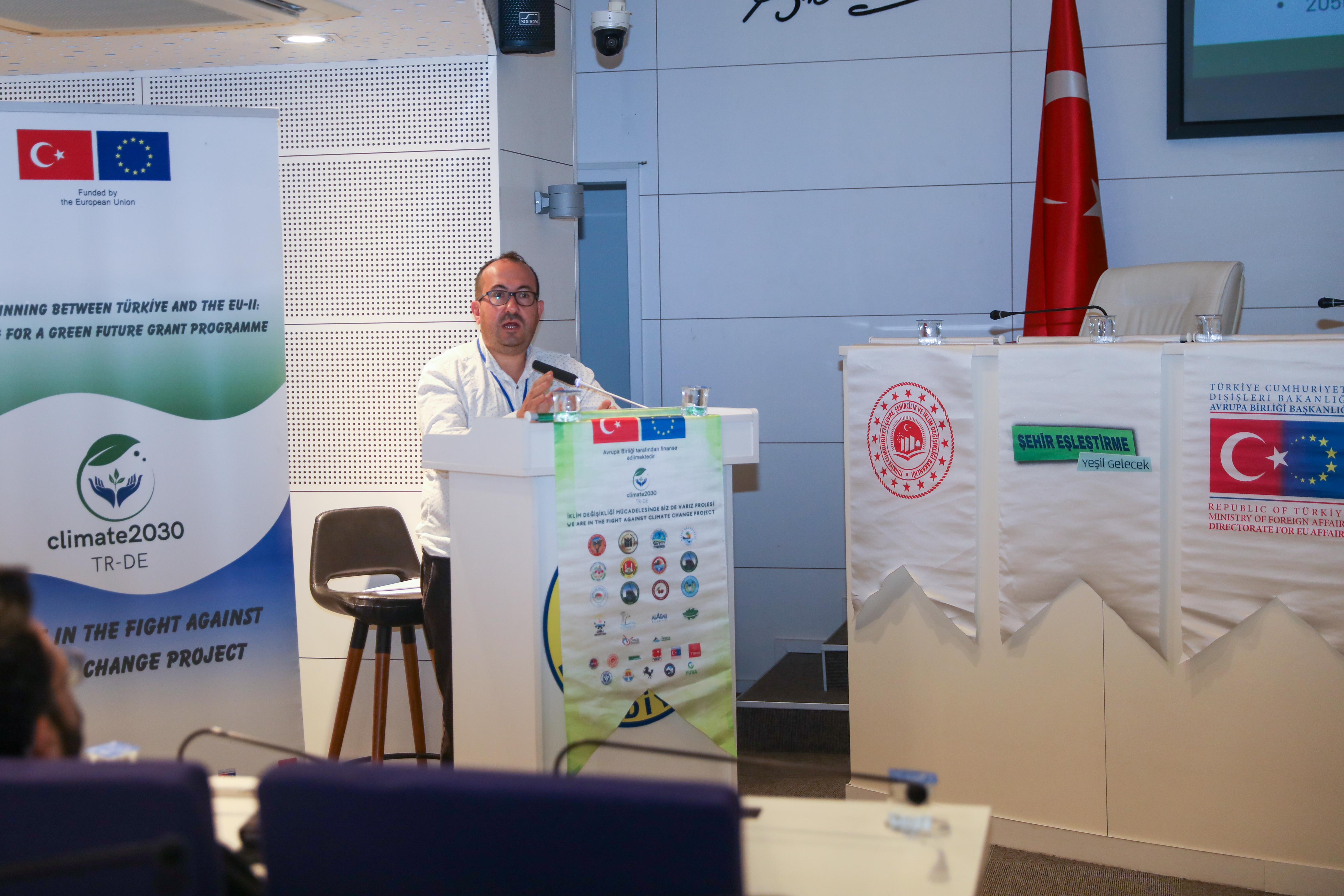 Stuttgart Belediyesi Proje Koordinatörü Dr. Annegret Warth, Stuttgart Belediyesi olarak 2035 yılına kadar iklim nötrlüğüne ulaşmak istediklerini belirterek, sürdürülebilir kalkınma hedefleri çerçevesinde eğitimlerin gerekli olduğuna inandıklarını ve bu yönde çalışmalar gerçekleştirdiklerini söyledi. Üç yıl gibi çok yakın bir zamanda her ilin Sürdürülebilir Enerji ve İklim Eylem Planı (SECAP) olmasının zorunluluk haline getirileceğini belirten Doç. Dr. Mete Çubukçu, bu süreçte gönüllülük esasına göre çalışmalarını önceden hayata geçirmiş olan belediyelerin bir adım önde olacaklarını ifade etti. Doç. Dr. Hasan Sarptaş ise belediyelere SECAP sürecinde rehber olması amacıyla hayata geçirilen SECAP Mentör adlı uygulama hakkında bilgi verdi. YUVA Derneği Başkanı Erdem Vardar, iklim çalışmalarına vatandaşları da dâhil edecek bir süreci aktarırken Gaziemir Belediyesi İklim Değişikliği ve Sıfır Atık Müdürlüğü’nden Çevre Mühendisi Gülcan Özhan da, belediye olarak iklim değişikliği, sıfır atık, sürdürülebilir enerji alanında yaptıkları çalışmaları anlattı.