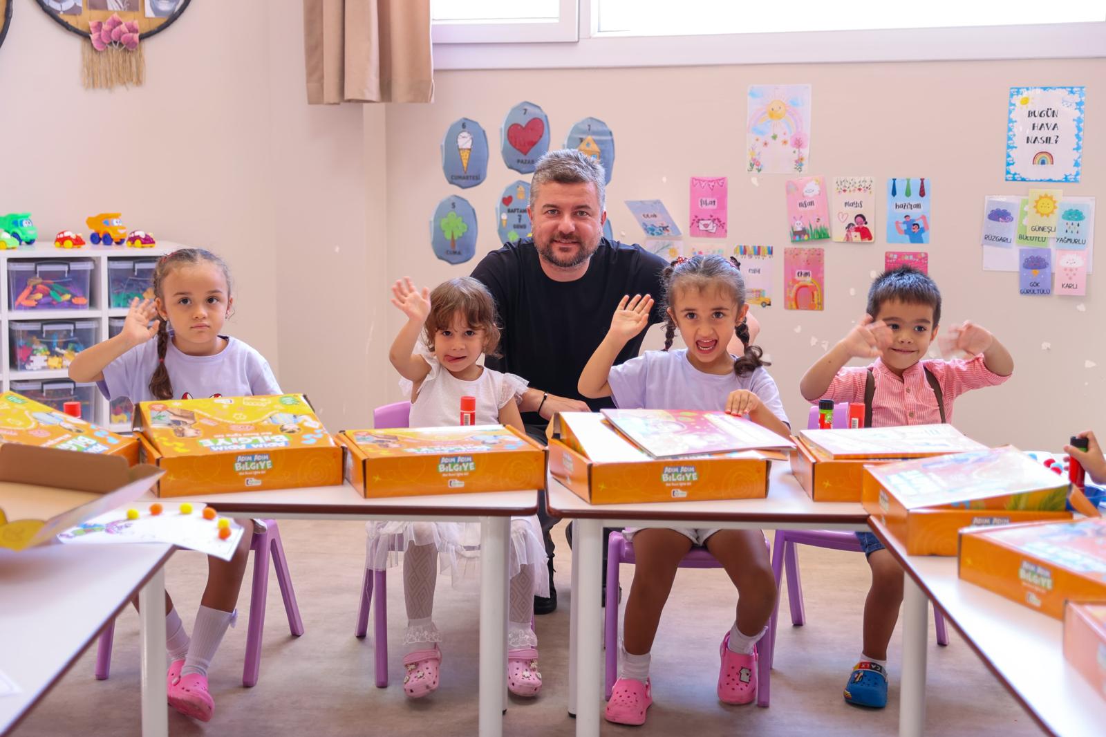 Buca Belediye Başkanı Görkem Duman, Betontaş Çınar Anaokulu’nu ziyaret ederek, miniklere eğitim seti hediye etti.