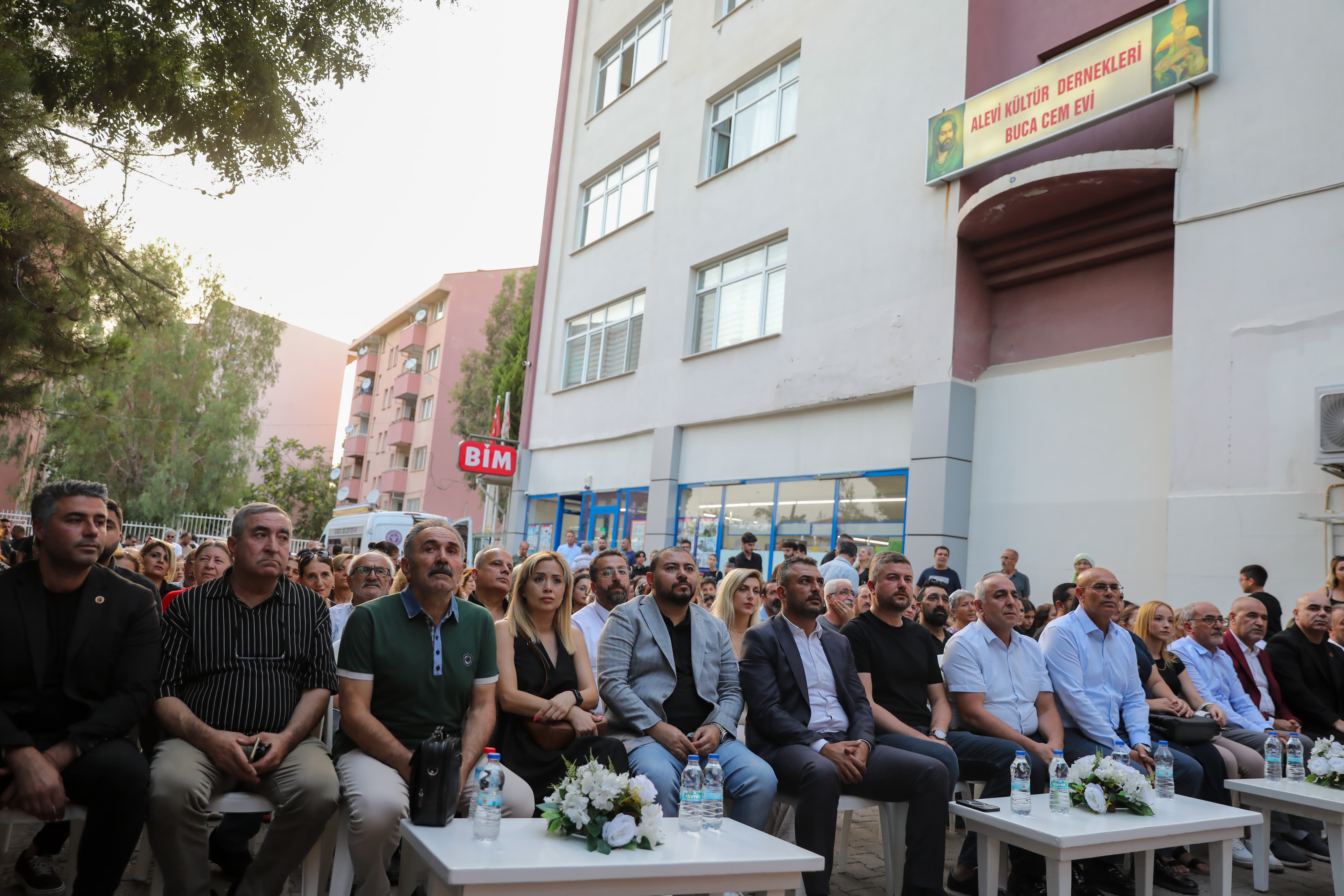 Alevi Kültür Dernekleri Buca Şubesi Cemevi Başkanı Hüseyin Gökçe ise bir ülkenin sanatçıları, yazarları, şairleri, aydınları ile var olduğunu ifade ederek, “Ancak ne yazık ki 2 Temmuz’da biz bu canlarımızı yitirdik. Dönemin yöneticileri seyirci kaldı. Düşünün ki Koray Kaya sadece 12 yaşında. 12 yaşındaki bir çocuk nasıl bir suç işlemiş olur? Madımak’ı anlamak için Alevi olmaya gerek yok, Sünni olmaya gerek yok. İnsan olmak yeterli... Başkasının acısını hissediyorsan insansın. Biz her 2 Temmuz’da bu acıyı yeniden yaşıyoruz” diye konuştu. Daha sonra, sanatçılar Kardeşler Muhabbeti Grubu ve Ozan Özdemir, türkülerini hayatlarını yitiren canların anısına söyledi.