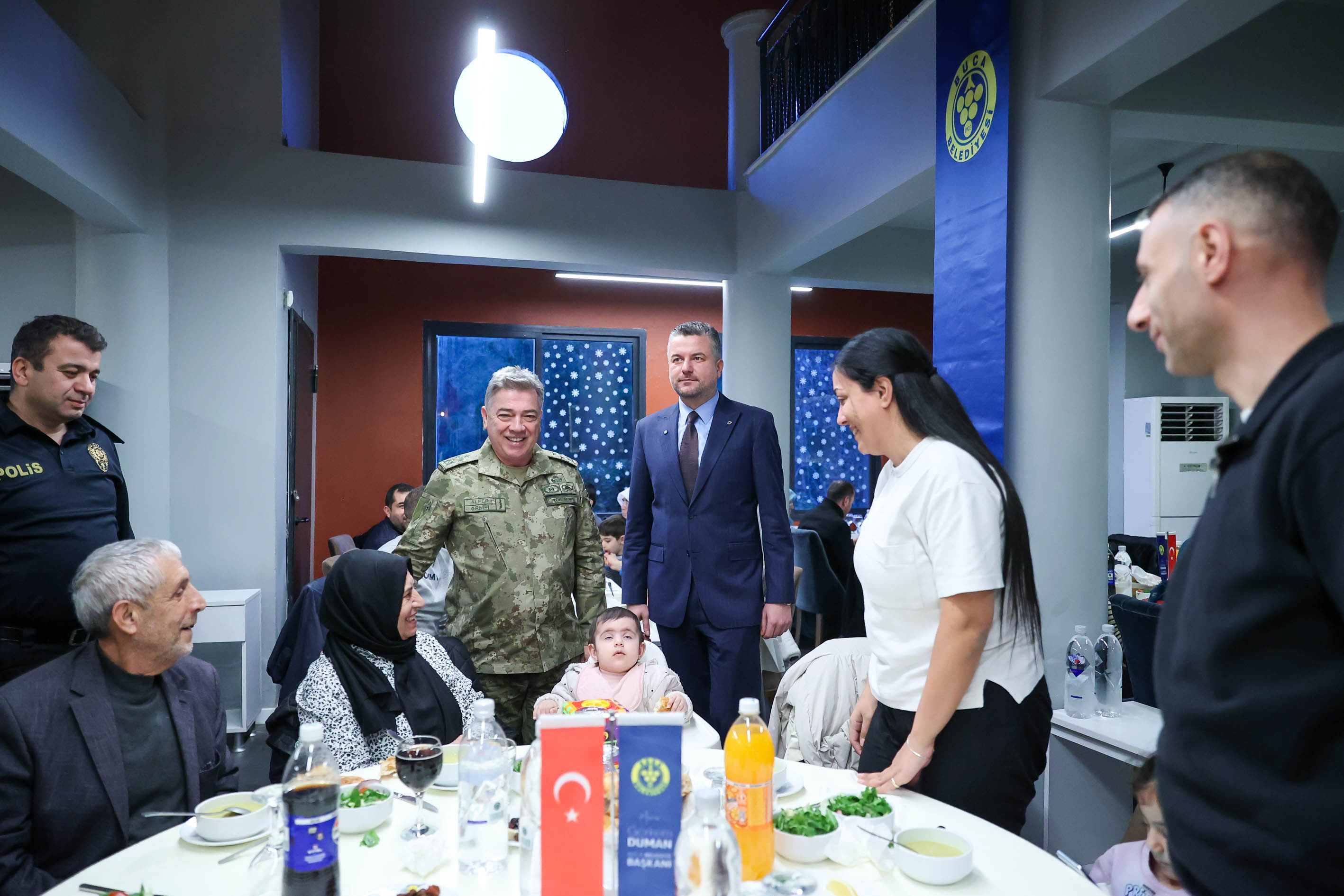 “Bizler, ‘Bayrakları bayrak yapan üstündeki kandır, toprak eğer uğrunda ölen varsa vatandır’ şiarıyla büyümüş bir nesiliz. Şehitlerimizin emaneti olan ailelerimiz ve kahraman gazilerimiz, bizim başımızın tacıdır. Bizler için en büyük görev, her zaman yanınızda olmak ve bu vefayı diri tutmaktır. Ramazan ayı paylaşmanın, dayanışmanın ve kardeşliğin ayıdır. Bu akşam bu sofrada oluşan bu birliktelik, bizim en büyük gücümüzdür. Rabbim tuttuğumuz oruçları, duaları kabul etsin.”