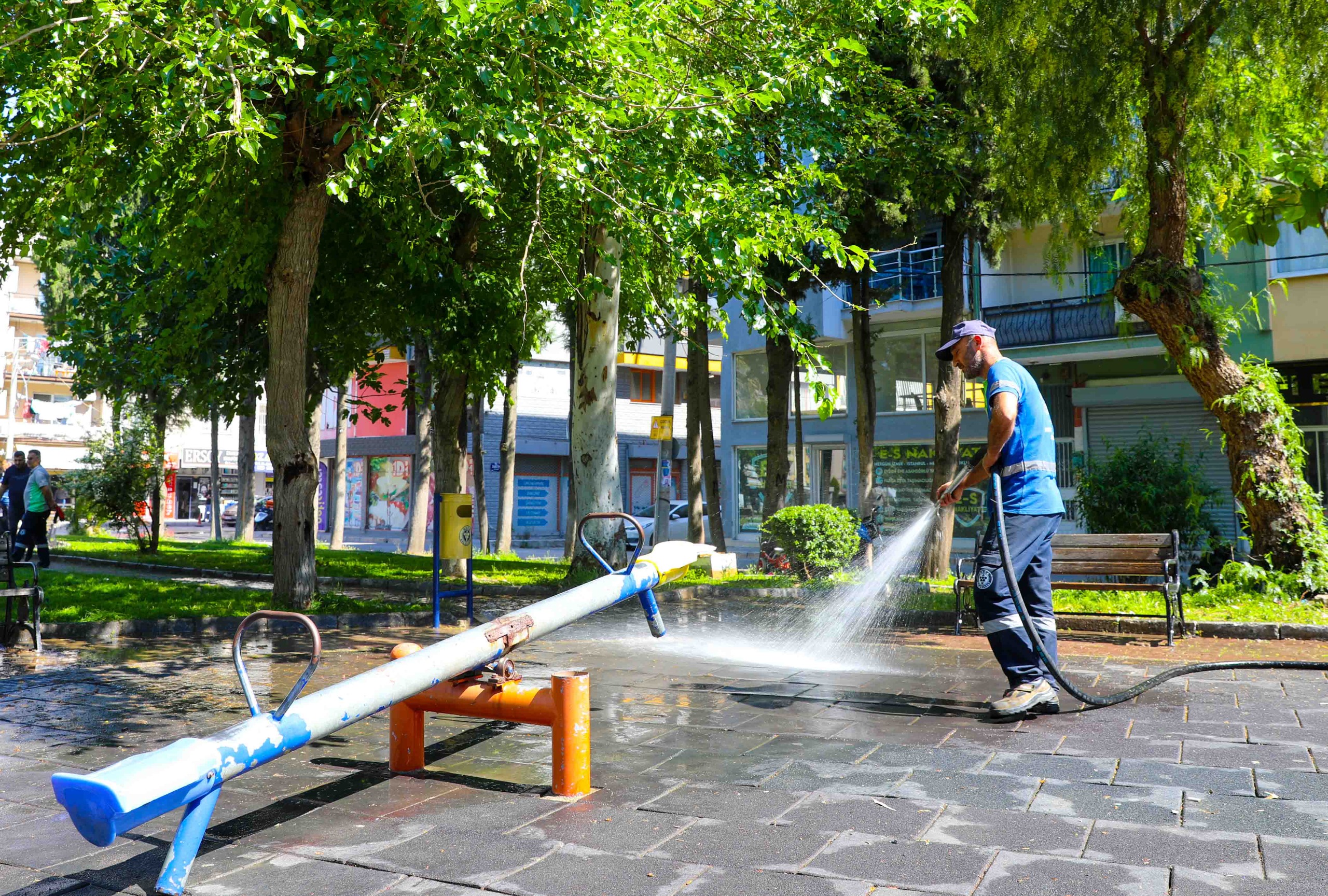 Buca Belediyesi’nin ilçe genelinde başlattığı temizlik çalışmaları tam gaz devam ediyor. Her gün büyük bir ekiple Buca’nın bir mahallesinde yürütülen çalışmalar kapsamında, parklardan sokaklara, çöp konteynerlerinden oyun alanlarına kadar her yer baştan aşağıya temizleniyor. Ayrıca, oyun alanlarının bakım ve tamiri de yapılırken kent mobilyaları da temizlik çalışmaları çerçevesinde yıkanıp onarılıyor. Yeşil alanlarda kosa çalışması yapılırken, ana caddeler süpürgeli temizlik araçlarıyla yıkanıp temizleniyor, konteynerler ise temizliğin ardından ilaçlanarak koku ve sinek oluşumunun önüne geçiliyor.
