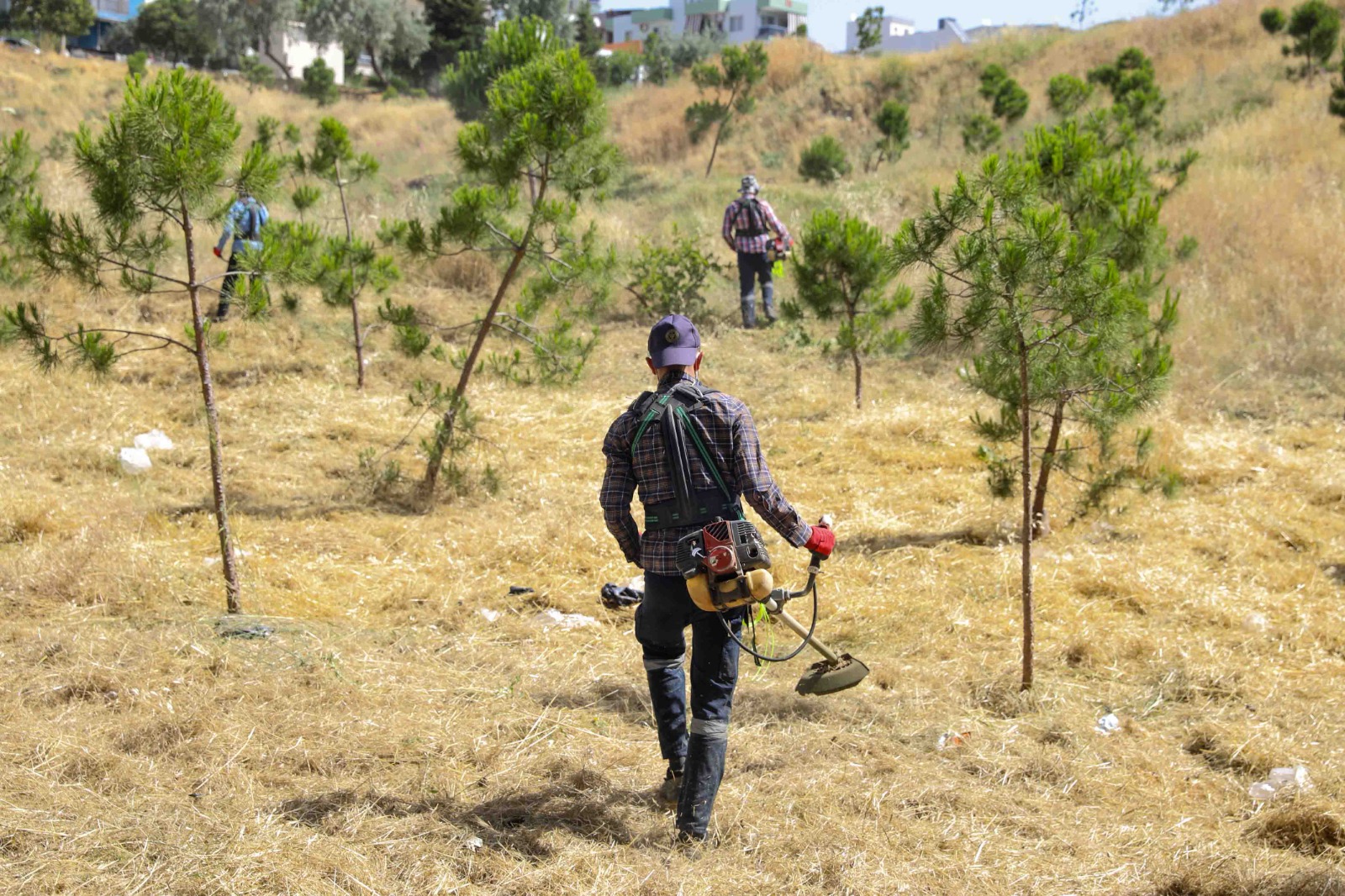 Buca Belediyesi, yabani ve kuru otların oluşturabileceği yangın riskine karşı ilçede kosa çalışmalarını artırdı.
