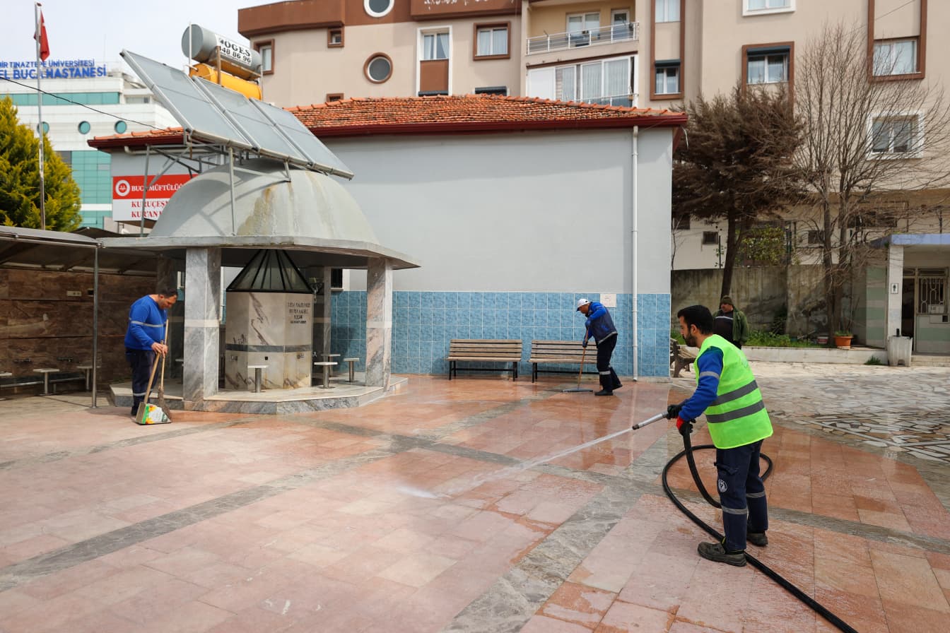 Ramazan Bayramı öncesinde harekete geçen Buca Belediyesi, ilçedeki cemevi ve camilerde temizlik çalışması başlattı. Vatandaşların bayram ibadetlerini daha temiz bir ortamda gerçekleştirmesi hedeflenen çalışmalar temizlik işleri müdürlüğü ekipleri tarafından gerçekleştirildi. İlçe sınırları içerisindeki cami ve cemevleri, ekiplerin titiz çalışmasıyla dezenfekte edilerek bayram namazına ve ziyaretlere hazır hale getirildi. Çalışmalar kapsamında, cami çevreleri ve avlular süpürülerek temizlendi; tazyikli su ile yıkanarak temizlendi.