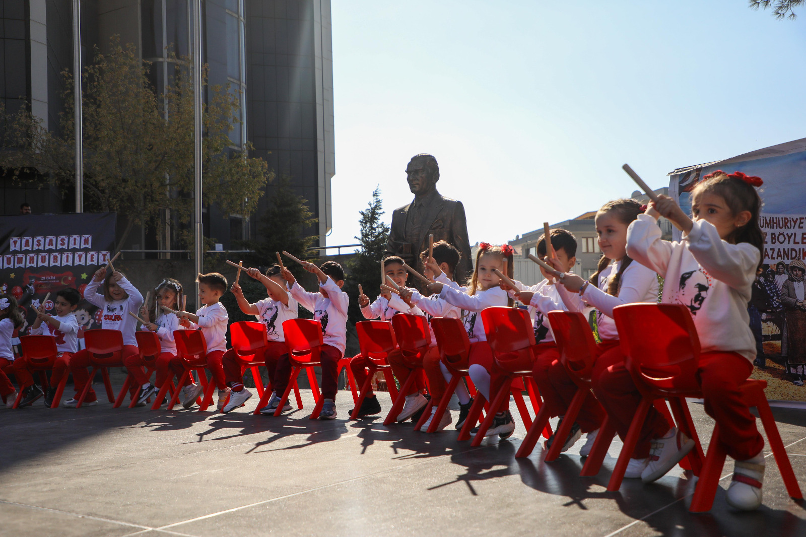 Buca Belediye Başkanı Görkem Duman, Çınar Anaokulları'nın hazırladığı Cumhuriyet Bayramı kutlamalarına katılarak çocukların bayram sevinçlerine ortak oldu.