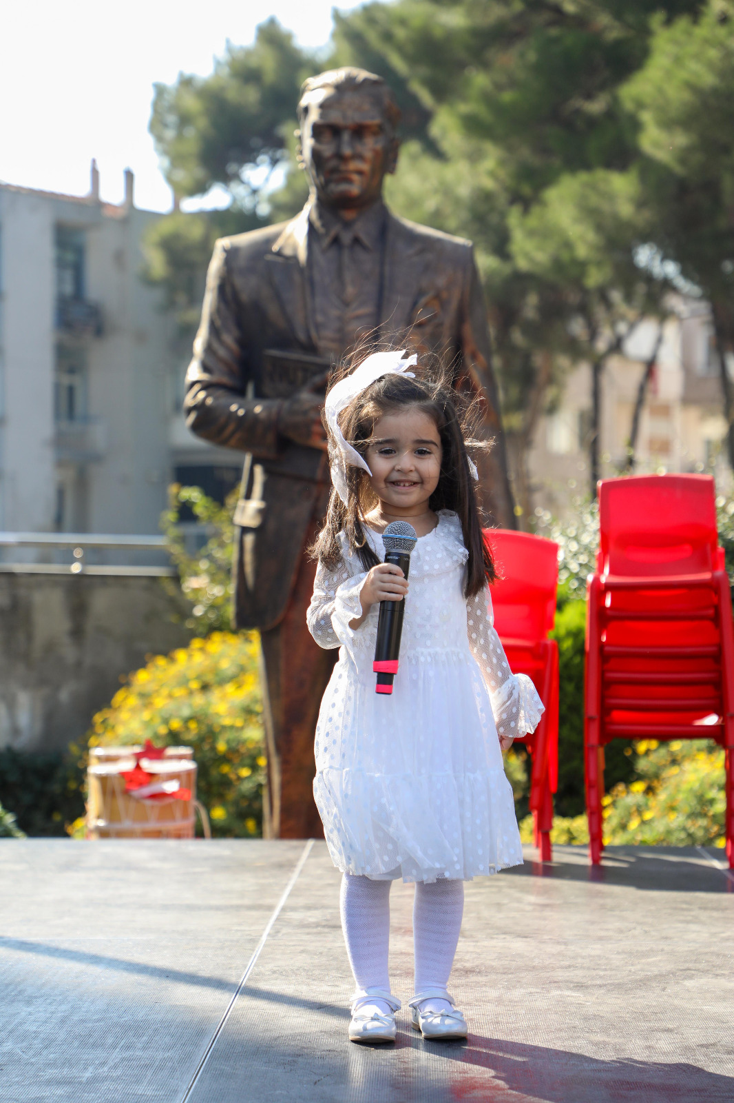 Minikler gösteride günün anlamına ilişkin şiirler okudu, danslar sergiledi. Öte yandan, Vali Rahmi Bey Çınar Anaokulu Bilge Tavşanlar sınıfı öğrencilerinin Parla - 100. Yıl Marşı'nı işaret dili ile söylemesi izleyicilerden büyük beğeni topladı. Miniklerin Atatürk'e söylemek istediği sözlerin okunması ise duygu dolu anlar yaşattı.