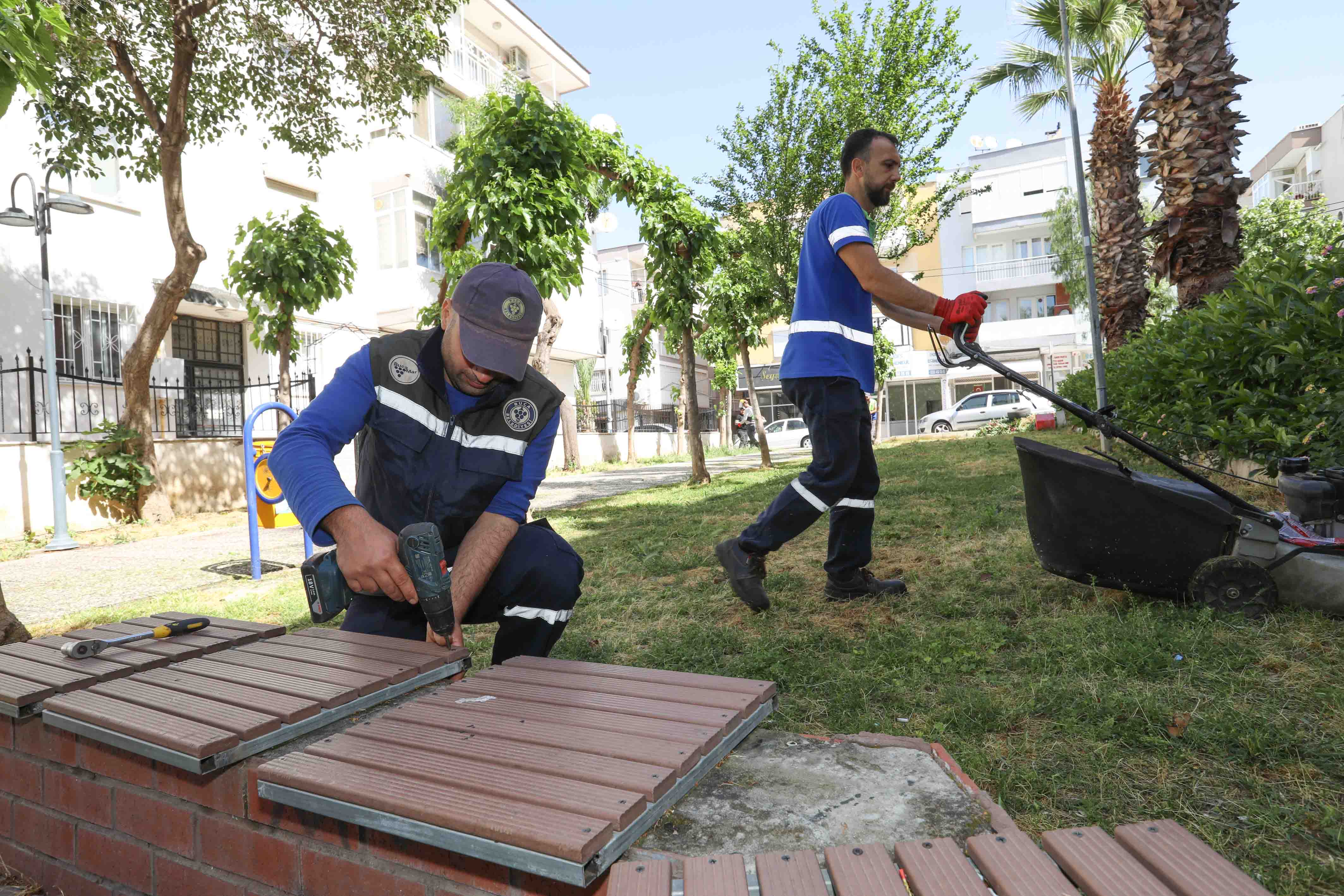 Buca Belediyesi, hava sıcaklıklarının artması ile birlikte ilçe genelinde bulunan parklarda bakım, onarım ve yeşillendirme çalışmalarına hız kazandırdı.