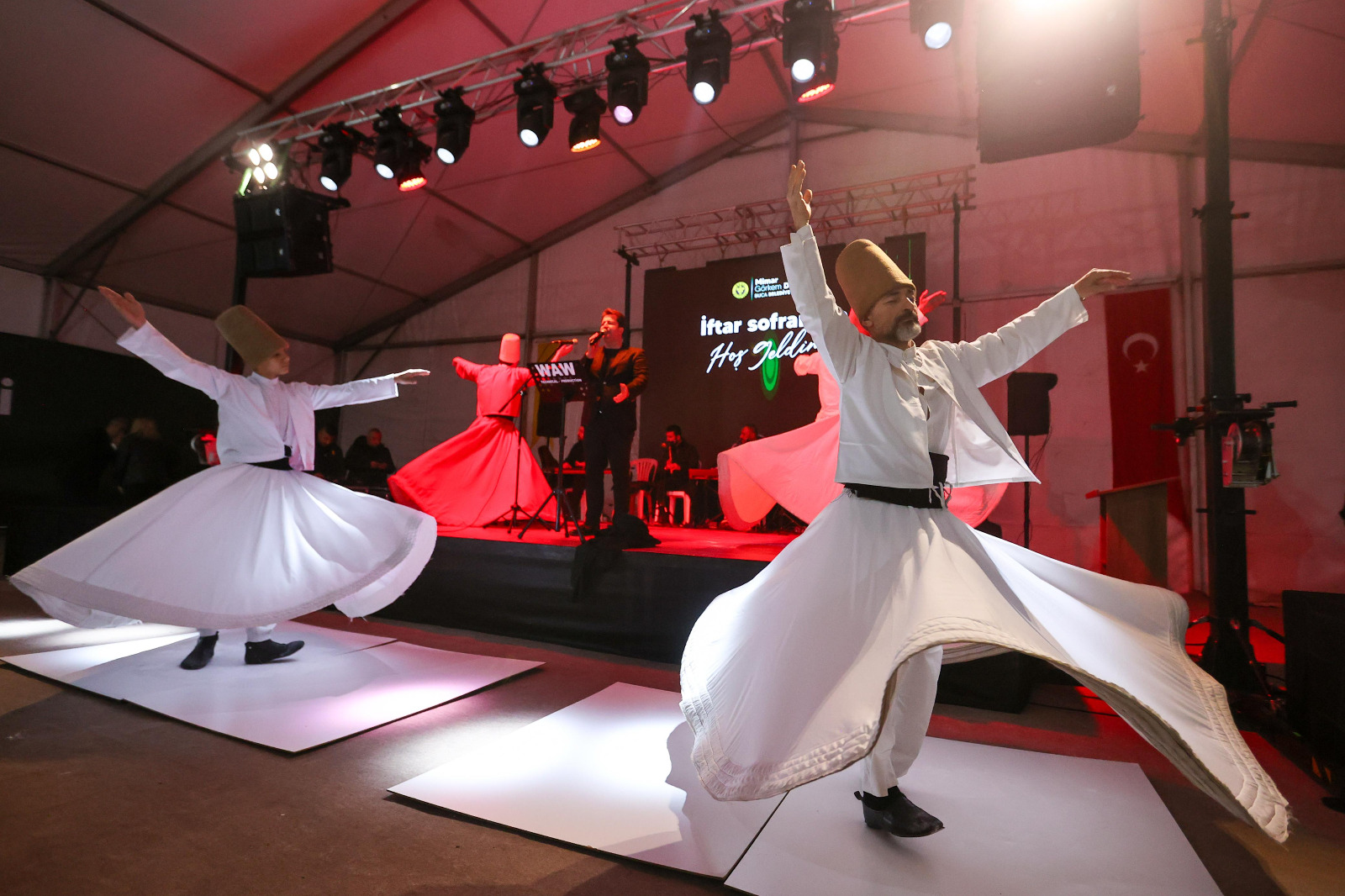 Buca Belediyesi Ramazan gelenekleri çerçevesinde iftar alanında çeşitli etkinlikler gerçekleştirdi. İftar yemeği boyunca sanatçılar tarafından ilahiler okunurken semazenlerin tasavvuf müziği eşliğinde gerçekleştirdiği gösteri vatandaşlar tarafından büyük beğeni topladı. Programda kentin çocukları da unutulmadı. Minikler için geleneksel gölge oyunu Hacivat ve Karagöz sergilendi.