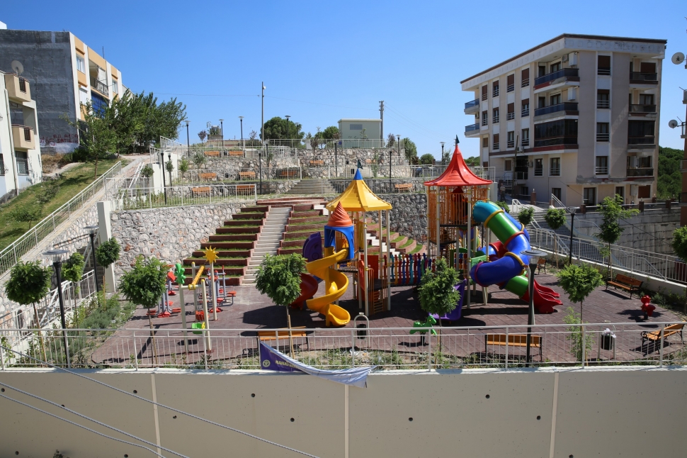 1210 metrekare alana inşa edilen park içerisinde, istinat duvarları, teraslama şekli ile oturma alanları, spor alanı ve çocuk oyun alanları oluşturulmuştur.