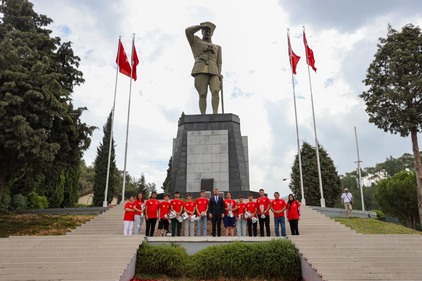 Buca Belediye Başkanı Görkem Duman, Afyonkarahisar’ın Şuhut ilçesinden gelen gençlerle Kurtuluş Savaşı’nın ve İzmir'in kurtuluşunun simge noktası olan Belkahve’de buluştu. Gençlerle birlikte Atatürk Anıtı’na çiçek bırakan Başkan Duman, “Atalarımızın bize emanet ettiği değerlere sonsuza kadar sahip çıkacak ve yaşatacağız” dedi.