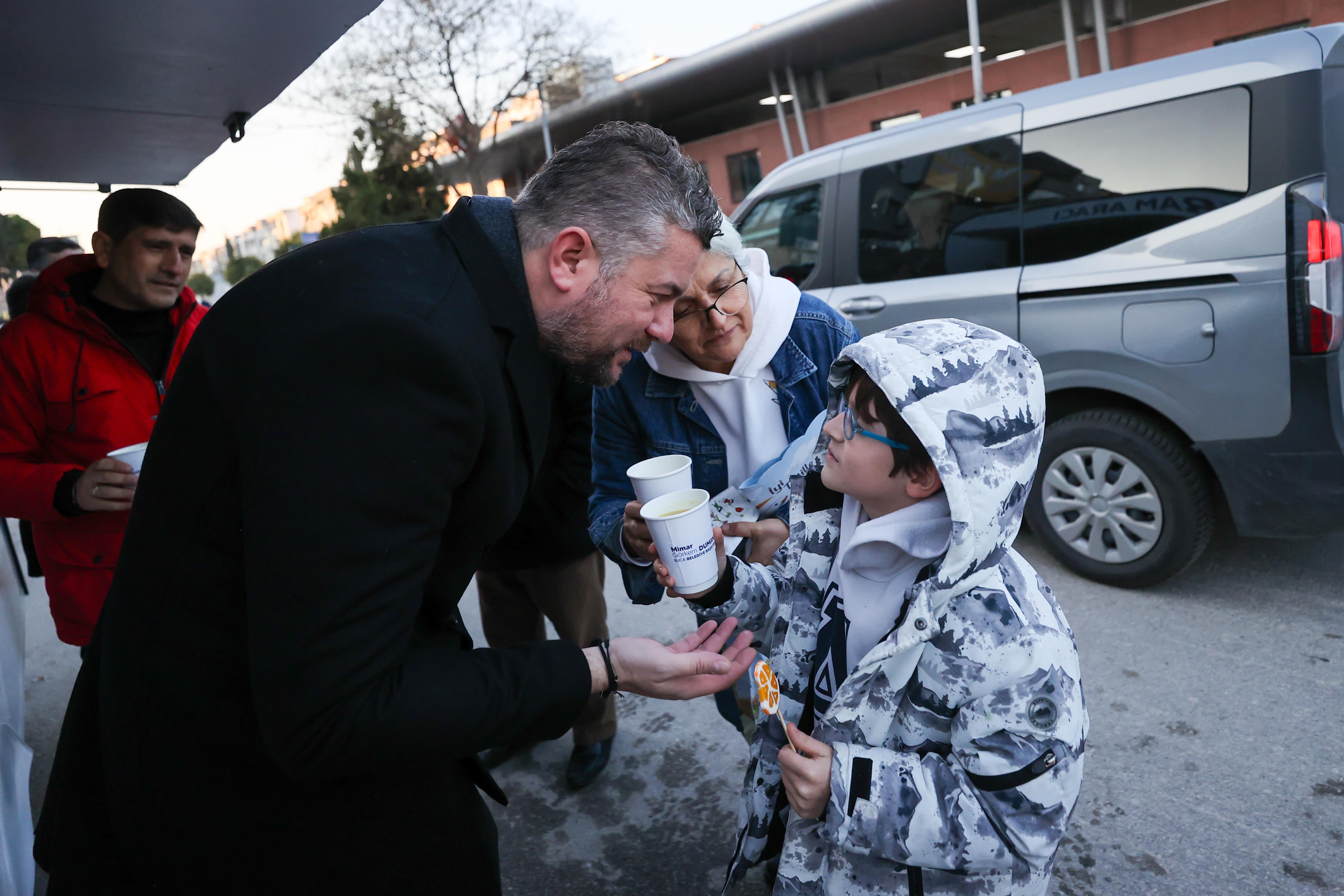 Bucalılara sabah sürprizi yapan Belediye Başkanı Mimar Görkem Duman, Şirinyer İzban İstasyonu girişinde kendi elleri ile çorba dağıttı.
