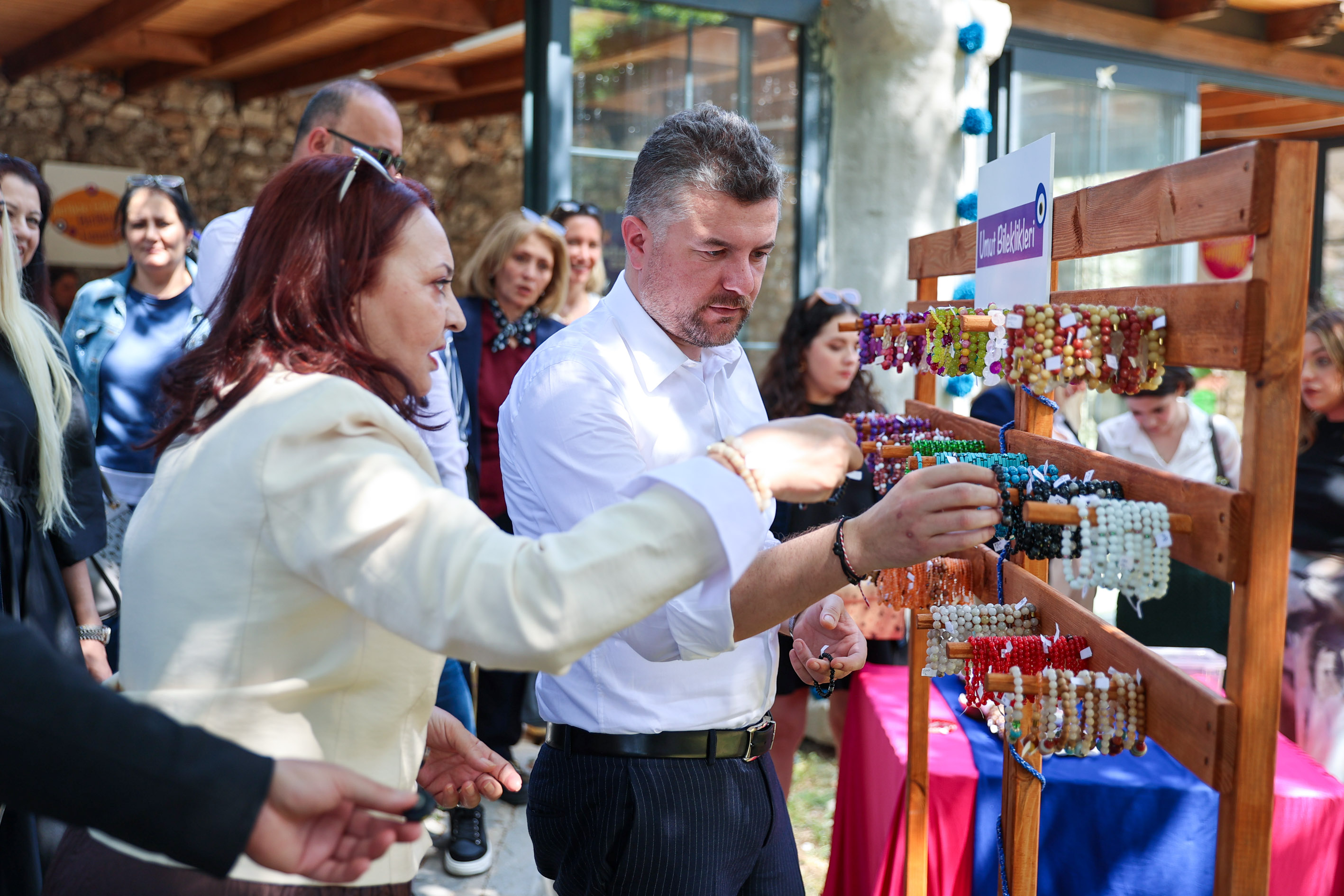 Buca Belediyesi, “Umut Bileklikleri Atölyesi” düzenleyerek çocuklara umut oldu. Atölyede elde edilen geliri Saadet Öğretmen Çocuk İstismarı ile Mücadele Derneği’ne (UCİM) bağışlayacaklarını belirten Buca Belediye Başkanı Mimar Görkem Duman, dayanışmaya destek vermek üzere atölyeye katılarak bileklik tasarladı.