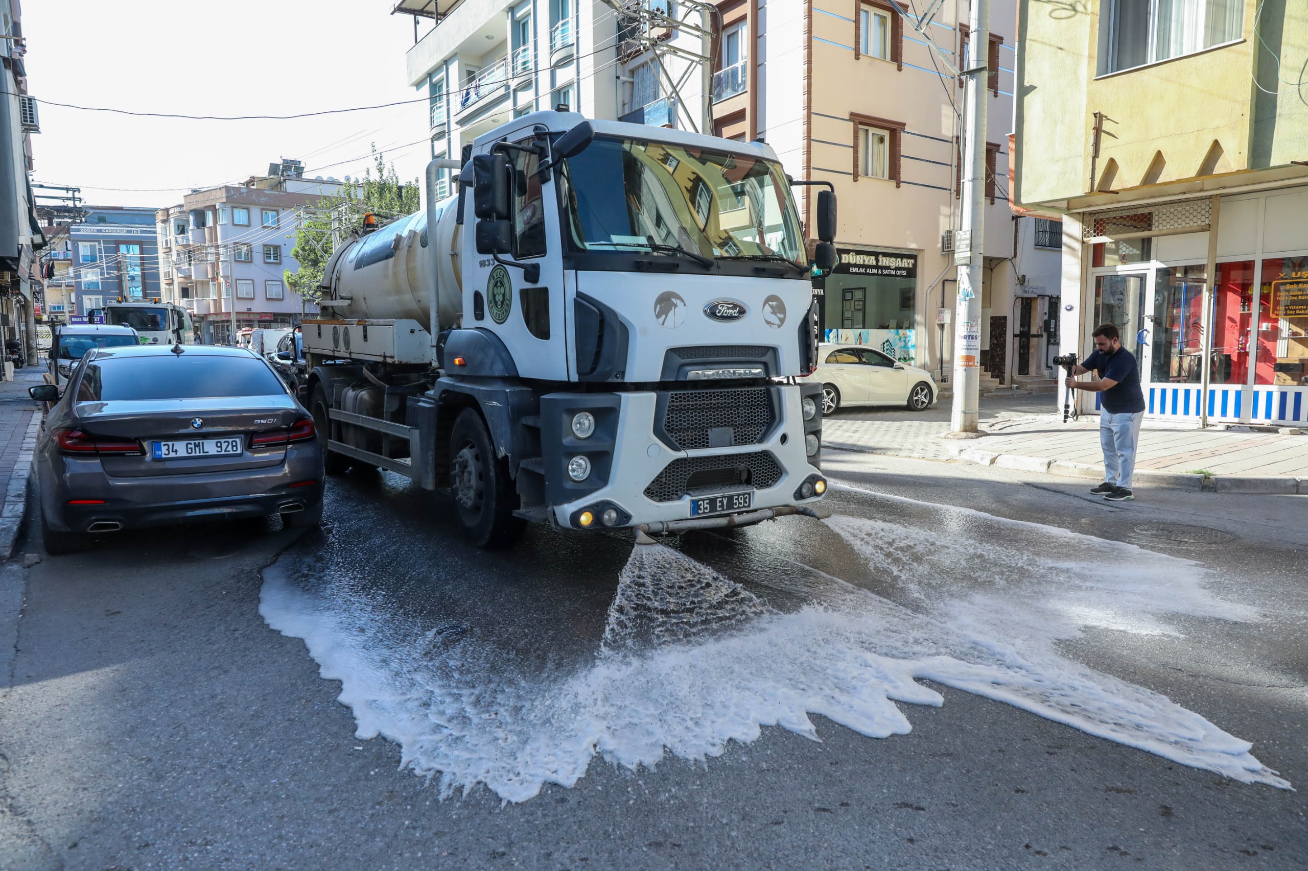 Temizlik çalışmaları çerçevesinde ana caddeler arazözler ile yıkanıyor. Ara sokaklara tek tek giren süpürgeciler, tüm sokakları baştan sona süpürüyor. Mahallelerde bulunan çöp konteynerleri özel araçlarla bulundukları yerde sterilize edilerek, koku oluşumunun önüne geçiliyor. Çocukların severek oynadığı oyun alanları özenle temizlenip, oyun grupları siliniyor. Parklar ve bahçeler de aynı şekilde önce süpürülüp ardından tazyikli su ile yıkanıyor. Yapılan çalışmalar vatandaşlar tarafından büyük takdir topluyor.