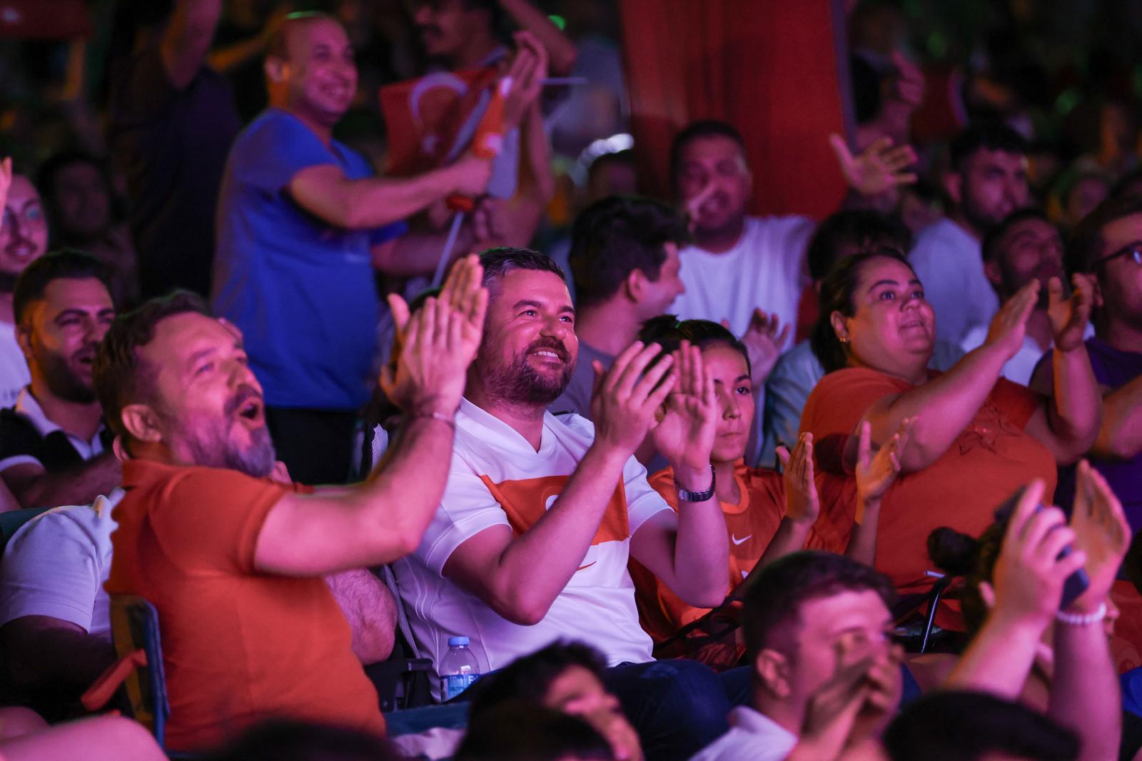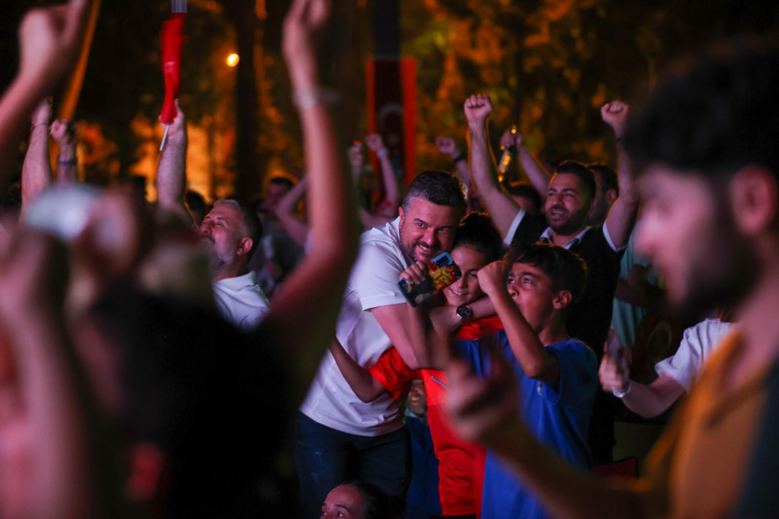 Buca Belediyesi, A Milli Futbol Takımı'nın Çekya ile karşılaştığı Avrupa Futbol Şampiyonası maçı için Hasanağa Bahçesi’nde dev ekran kurdu. Alanı kırmızı beyaz formalarıyla dolduran onlarca Bucalı ellerinde Türk bayraklarıyla coşku dolu bir gece yaşadı. Buca Belediye Başkanı Görkem Duman da millî heyecana dev ekran karşısında vatandaşlarla birlikte ortak oldu.