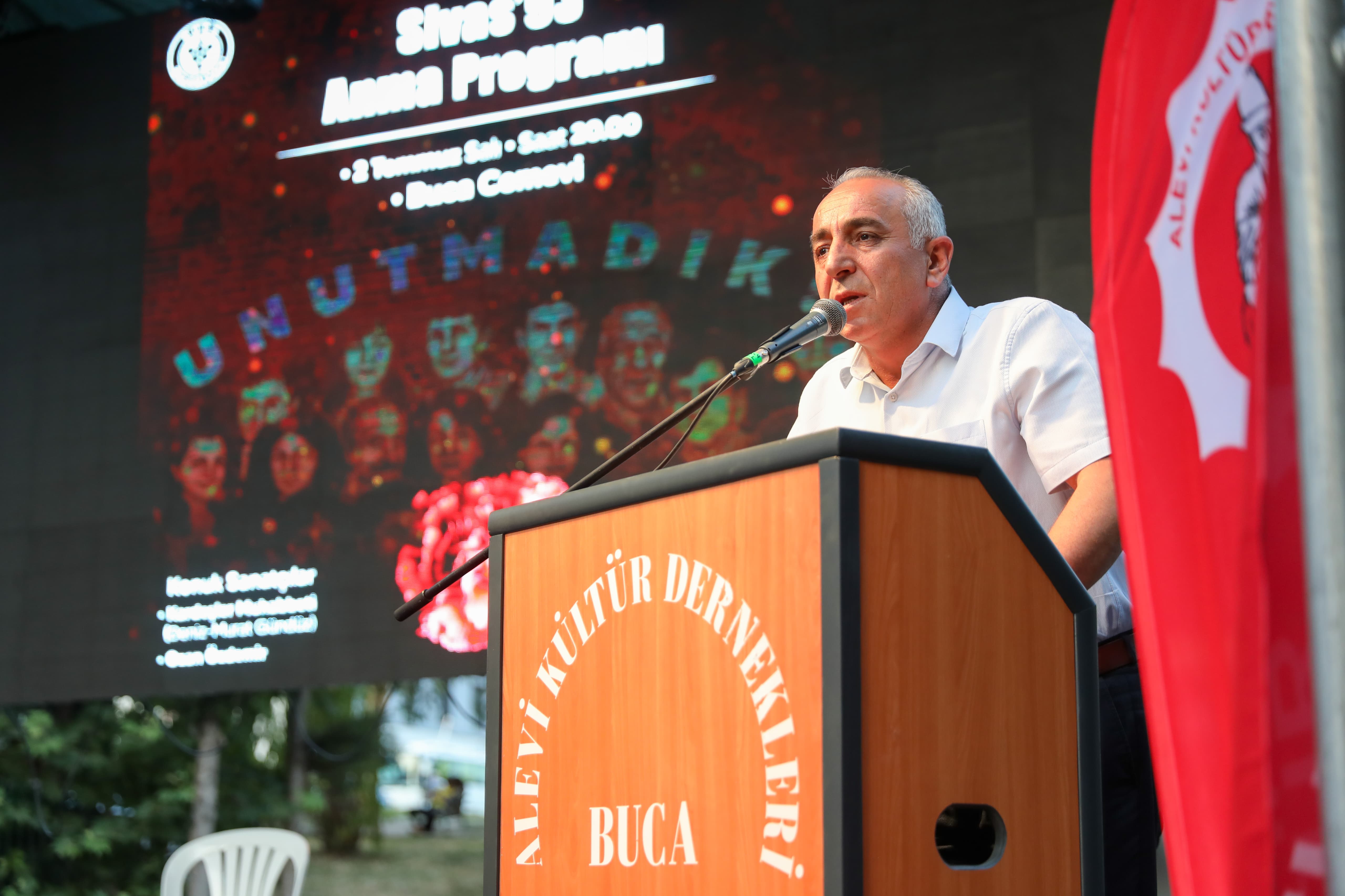Buca, Türkiye tarihinin en utanç verici sayfalarından olan 2 Temmuz 1993 Sivas Katliamı’nda hayatını kaybeden canları unutmadı. Buca Belediye Başkanı Görkem Duman, “Tam 31 yıldır hepimizin yüreğinde sönmeyen bir ateştir Sivas. Orada yanan canları da yakanları da unutmadık” dedi.