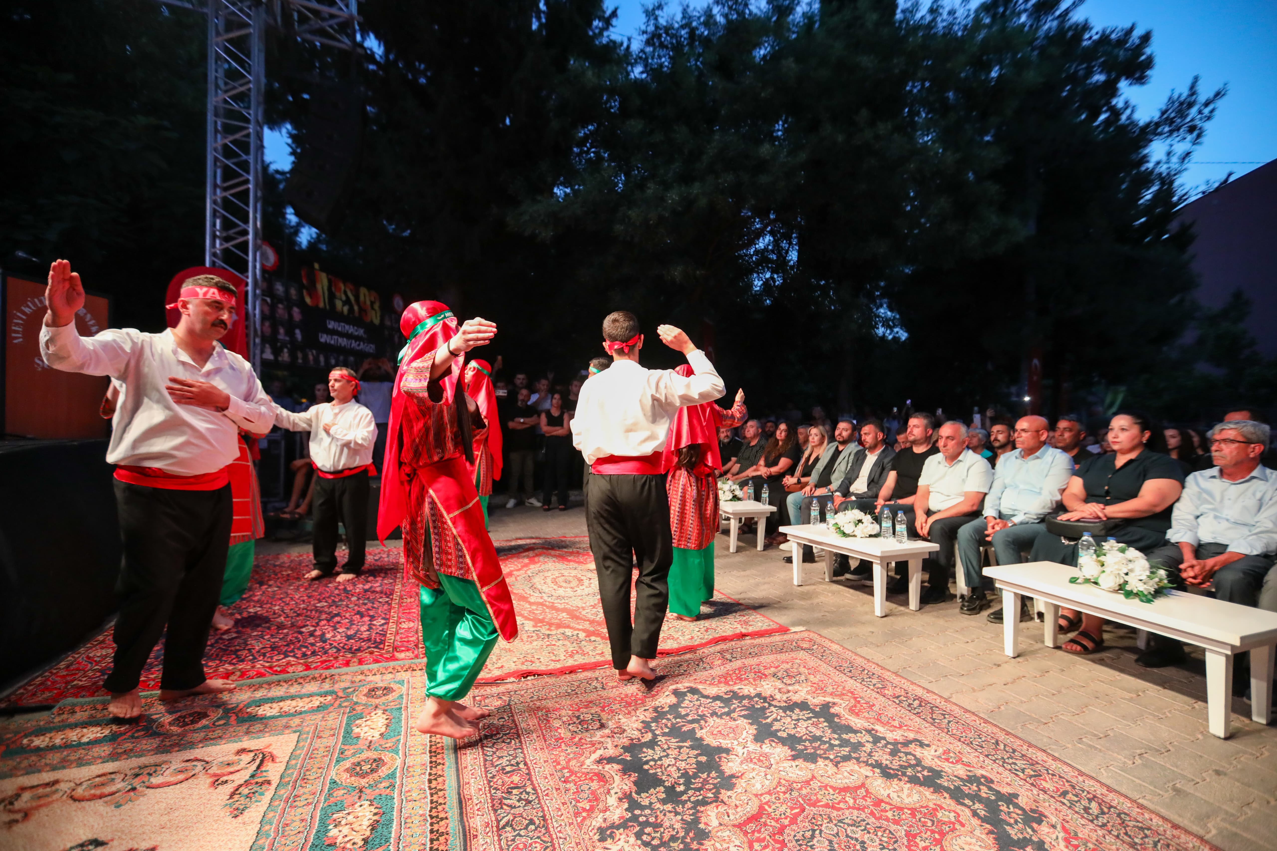 Alevi Kültür Dernekleri Buca Şubesi Cemevi Başkanı Hüseyin Gökçe ise bir ülkenin sanatçıları, yazarları, şairleri, aydınları ile var olduğunu ifade ederek, “Ancak ne yazık ki 2 Temmuz’da biz bu canlarımızı yitirdik. Dönemin yöneticileri seyirci kaldı. Düşünün ki Koray Kaya sadece 12 yaşında. 12 yaşındaki bir çocuk nasıl bir suç işlemiş olur? Madımak’ı anlamak için Alevi olmaya gerek yok, Sünni olmaya gerek yok. İnsan olmak yeterli... Başkasının acısını hissediyorsan insansın. Biz her 2 Temmuz’da bu acıyı yeniden yaşıyoruz” diye konuştu. Daha sonra, sanatçılar Kardeşler Muhabbeti Grubu ve Ozan Özdemir, türkülerini hayatlarını yitiren canların anısına söyledi.
