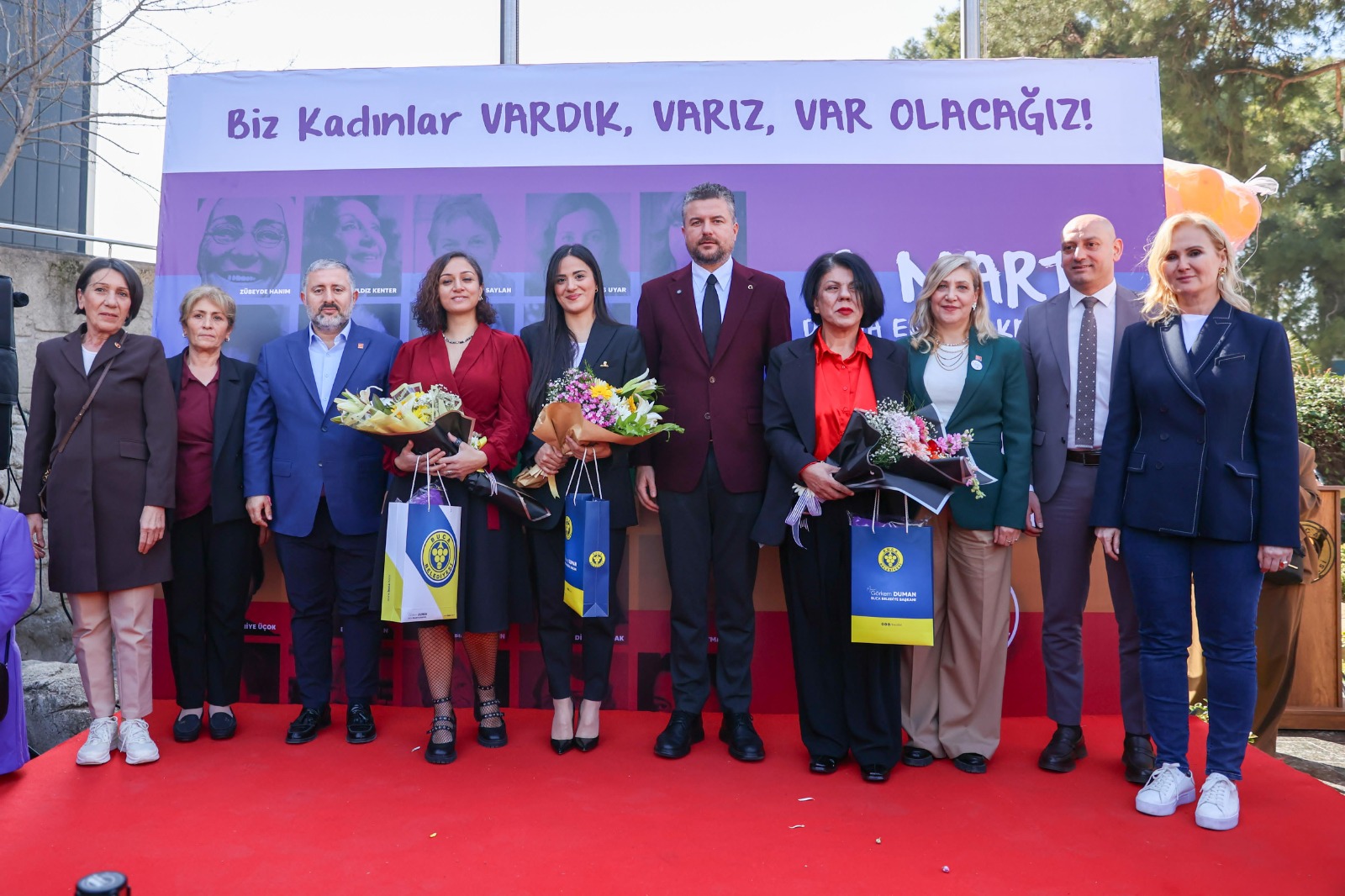 Etkinlikte konuşma yapan Buca Belediye Başkanı Görkem Duman, 8 Mart Dünya Emekçi Kadınlar Günü’nü kutlayarak, şunları söyledi: “Büyük Önder Mustafa Kemal Atatürk, ‘Dünya üzerinde gördüğümüz her şey kadının eseridir’ diyerek, kadın emeğinin, kadın gücünün ve kadın varlığının önemini bizlere en güzel şekilde anlatmıştır. Ne yazık ki, bugün ülkemizde kadınların kazanılmış hakları birer birer ellerinden alınmaya çalışılıyor; kadınlar, eşitsizliğin, yoksulluğun ve şiddetin gölgesinde bırakılmak isteniyor. Bizler ise bu düzene karşı, bulunduğumuz her alanda toplumsal cinsiyet eşitliğini sağlayarak, a varlıklarını daha da güçlendirecek adımlar atmak için var gücümüzle çalışıyoruz. Buca Belediyesi olarak açtığımız kurslarla eğitim olanaklarını artırıyor, istihdam fırsatlarını çoğaltıyoruz. Üzerimize düşen tüm görevleri de her zaman yerine getirmeye hazırız. Hiçbir baskı ve ayrımcılığın, kadınların eşitlik ve özgürlük mücadelesini durduramayacağını burada bir kez daha üzerine basa basa tekrar ediyoruz.”