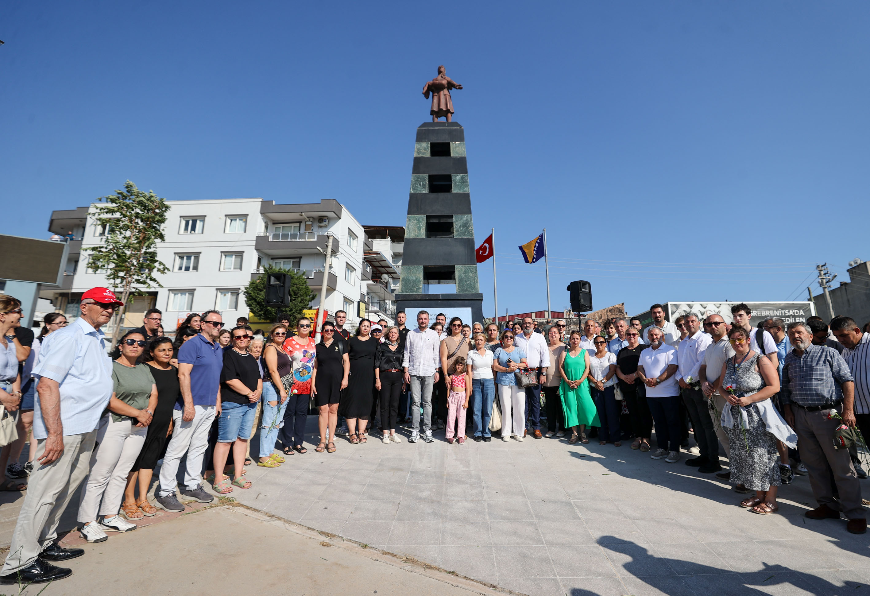 Buca Belediyesi, Srebrenitsa Soykırımı'nın 30.yıl dönümünde, yitirilen 8 bin 372 can için Adatepe Mahallesi'ndeki Srebrenitsa Anıtı önünde tören düzenledi. Törene, Buca Belediye Başkanı Görkem Duman, Cumhuriyet Halk Partisi (CHP)İzmir Kadın Kolları Başkanı Zahide Kurun, CHP Buca İlçe Başkanı Çağdaş Kaya, Buca Belediyesi Meclis üyeleri, sivil toplum kuruluşları ve vatandaşlar katıldı. Törenin diğer katılımcıları ise Karadağ, Bosna Hersek, Kosova ve Sırbistan’dan gelen Boşnak gençler oldu. Boşnak gençler, Srebrenitsa annelerinin elleriyle yaptıkları çiçeği, Buca Belediye Başkanı Görkem Duman'a takdim ettiler. Ayrıca, alandaki katılımcılara, soykırımın simgesi olan “mavi kelebek” rozetleri dağıtıldı.