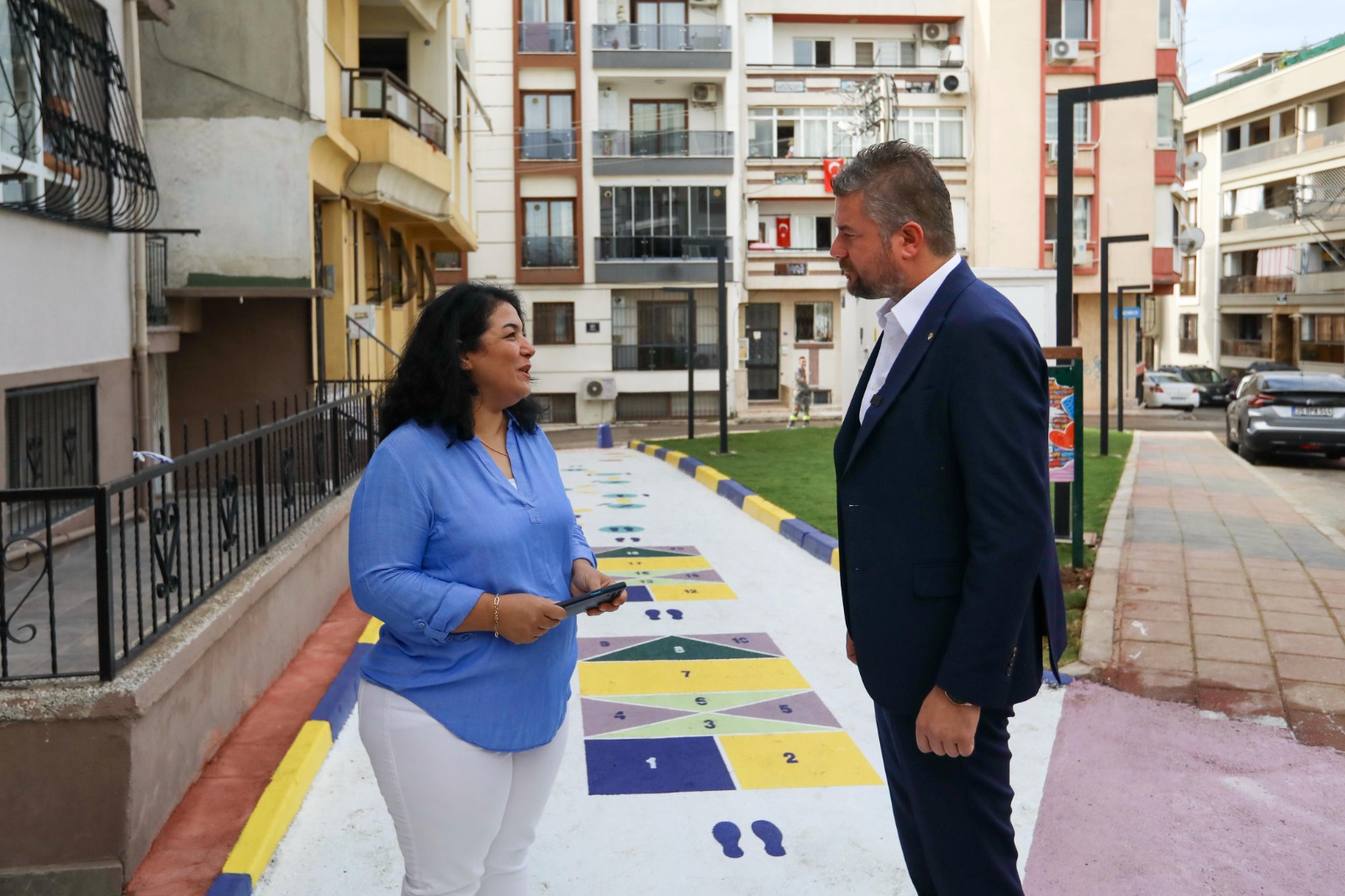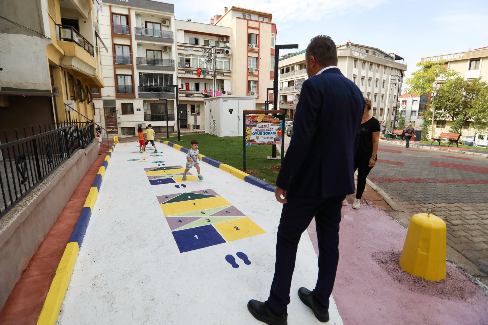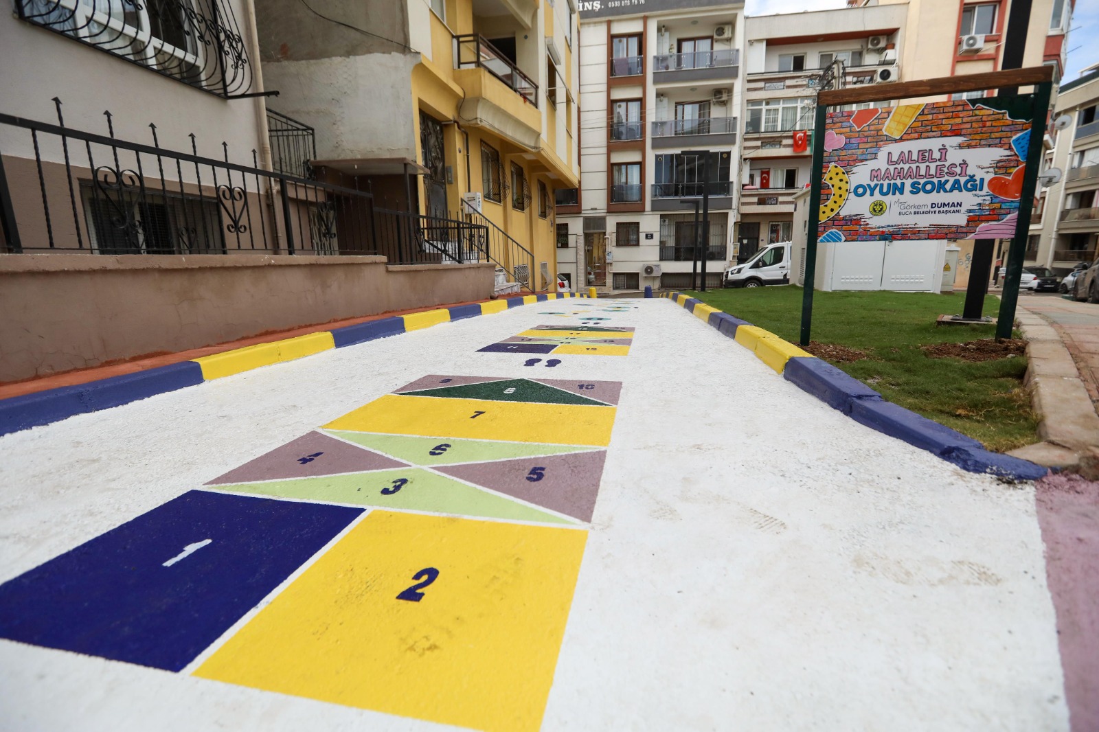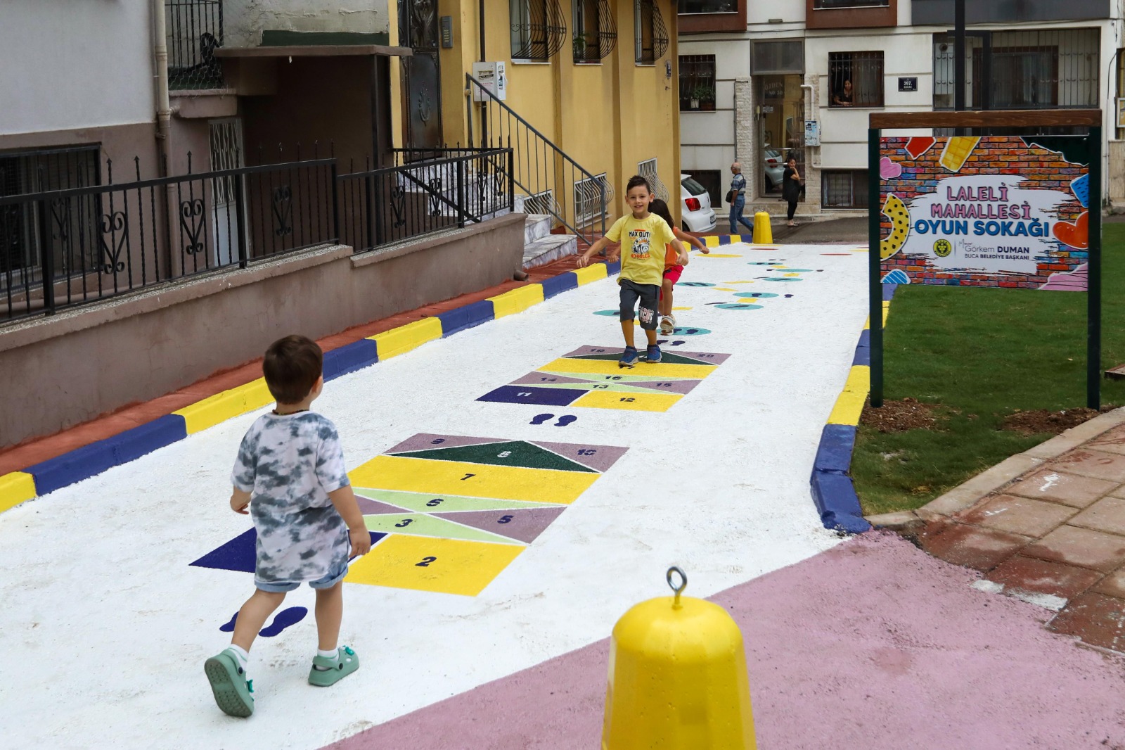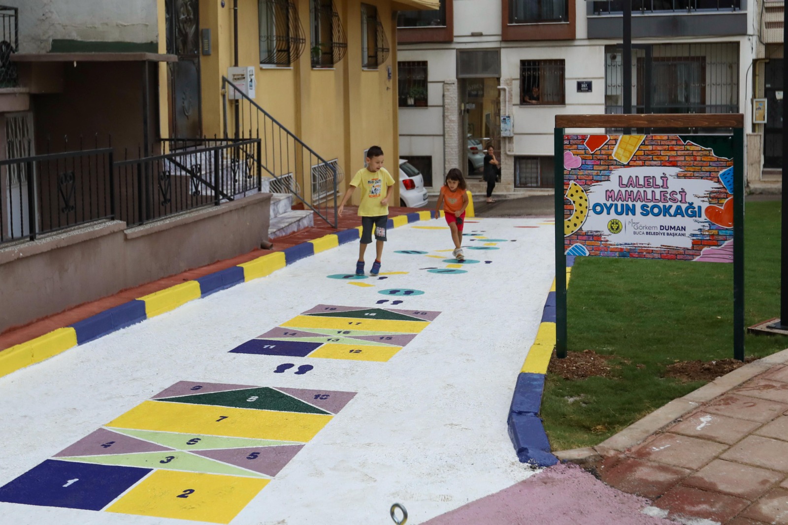 Çocuk Oyun Sokağı’nda çocukların fiziksel gelişimlerini destekleyecek seksek, zıplama, dans oyunu ve yerden yüksek gibi geleneksel oyunlar zemine işlendi. Çocukların kendi oyunlarını da oluşturabilmeleri için çizimler esnek bırakılarak “yaşayan sokaklar” için güzel bir örnek oluşturuldu. Yapılan çalışmadan çok memnun olduklarını ifade eden Laleli Mahallesi sakinleri, Buca Belediye Başkanı Görkem Duman’a teşekkür etti.