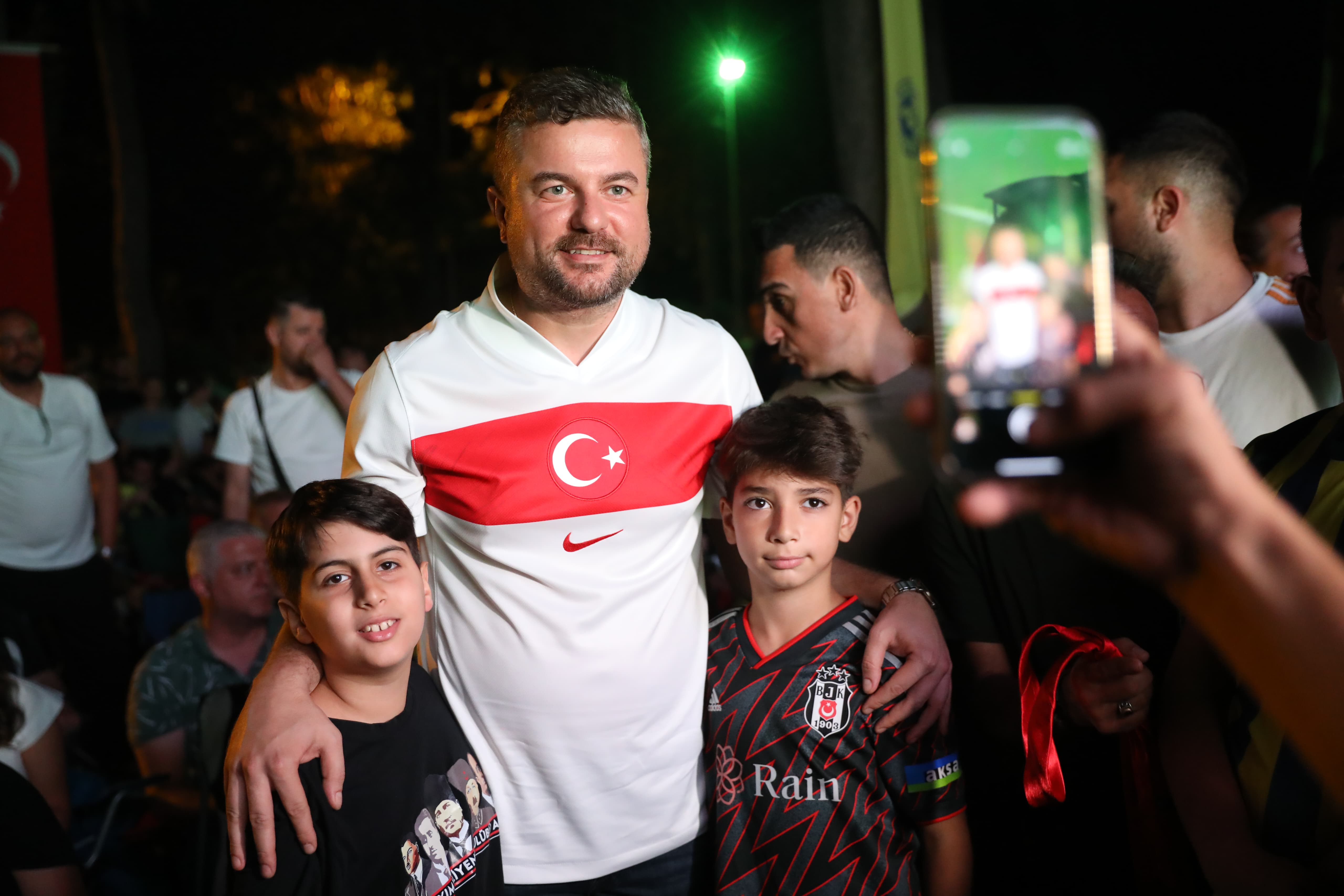 Buca Belediyesi, millî maç coşkusunu hep birlikte yaşayabilmek için Hasanağa Bahçesi’ne dev ekran kurdu. Sandalyelerini alan Bucalılar, erken saatlerden itibaren alanı doldurdu. Buca Belediye Başkanı Görkem Duman da alana gelerek maçı Bucalılar ile birlikte izledi. Atılan gollerle heyecanın doruğa ulaştığı alanda zafer coşkusu ise görülmeye değerdi.