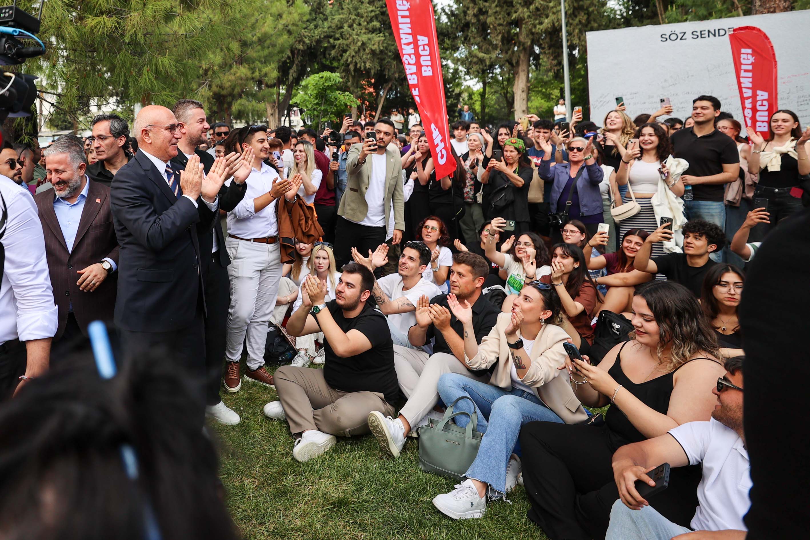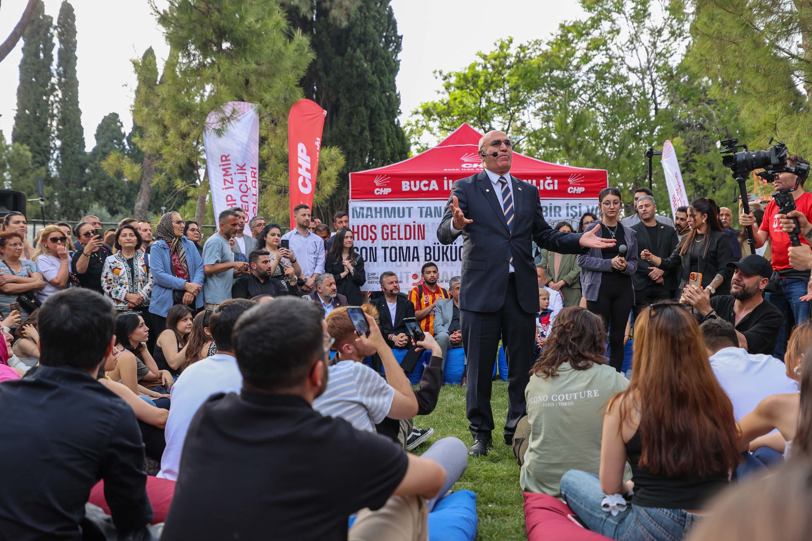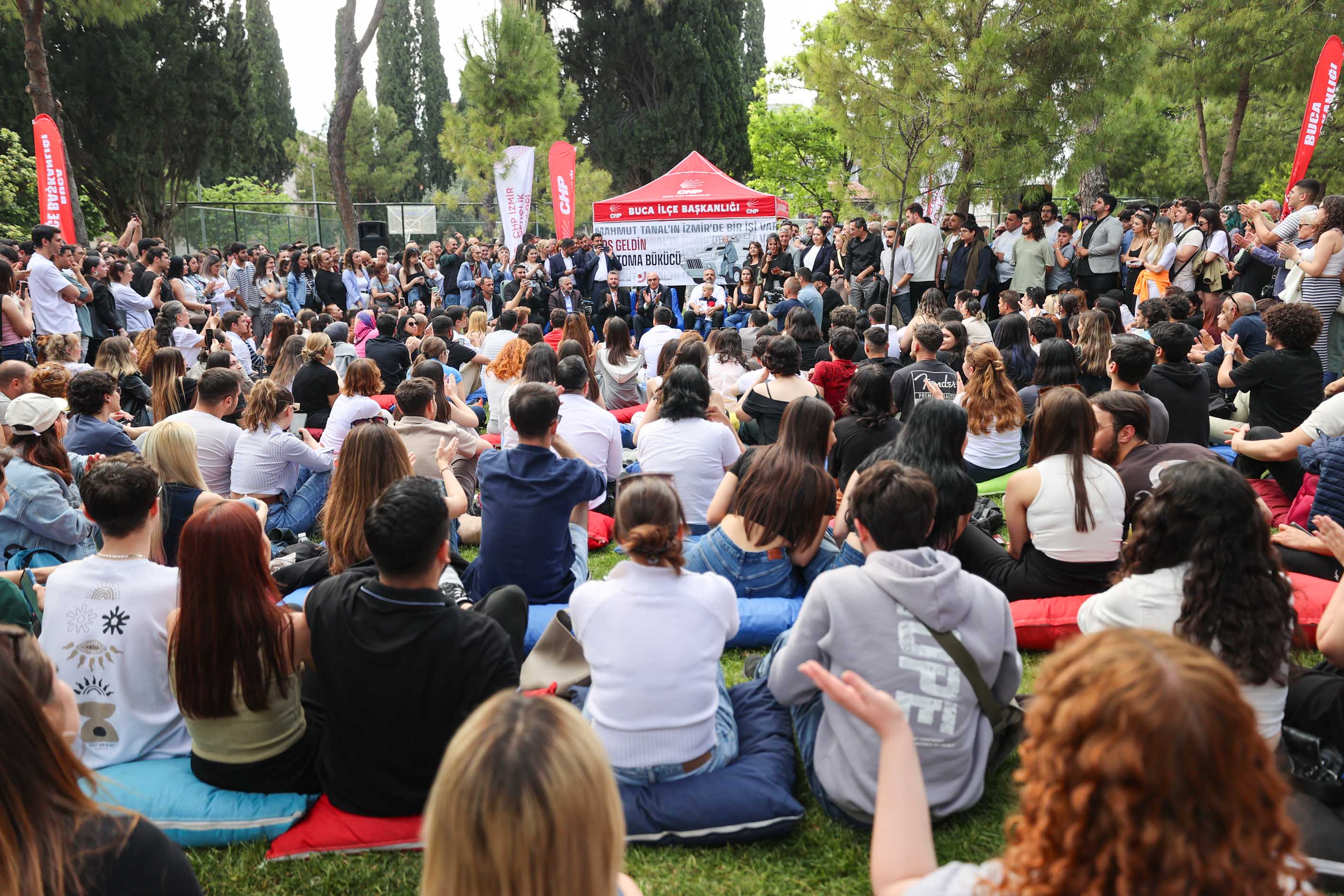 Buca Belediye Başkanı Görkem Duman ise “Hizmetlerimizi oluştururken siz gençlere pozitif bir ayrıcalık yapacağımızı vurgulamak istiyorum. Geçtiğimiz günlerde üçüncü Kent Lokantamızı sizler için açtık; Tınaztepe Kampüsü’nün karşısında Tarık Akan Gençlik Merkezi’nin tam karşısında. Diğer illerden gelen arkadaşlarımızın anne babalarının içleri rahat olsun. Burada Görkem ağabeyleri var. Onlara çok iyi bakıyor” diye konuştu. CHP İzmir İl Başkanı Şenol Aslanoğlu da aydınlık günlerin gençlerle birlikte geleceğini söyledi.